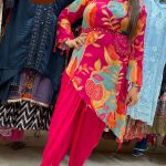 Attractive 3pc chinnon tulip pant set with short A-line kurti with hand & original mirror work on upper part & print pattern on all over the kurti with matching plain tulip pant with matching plain shiffon dupatta with matching hand & original mirror work on all over the purse with attached complimentary belt.