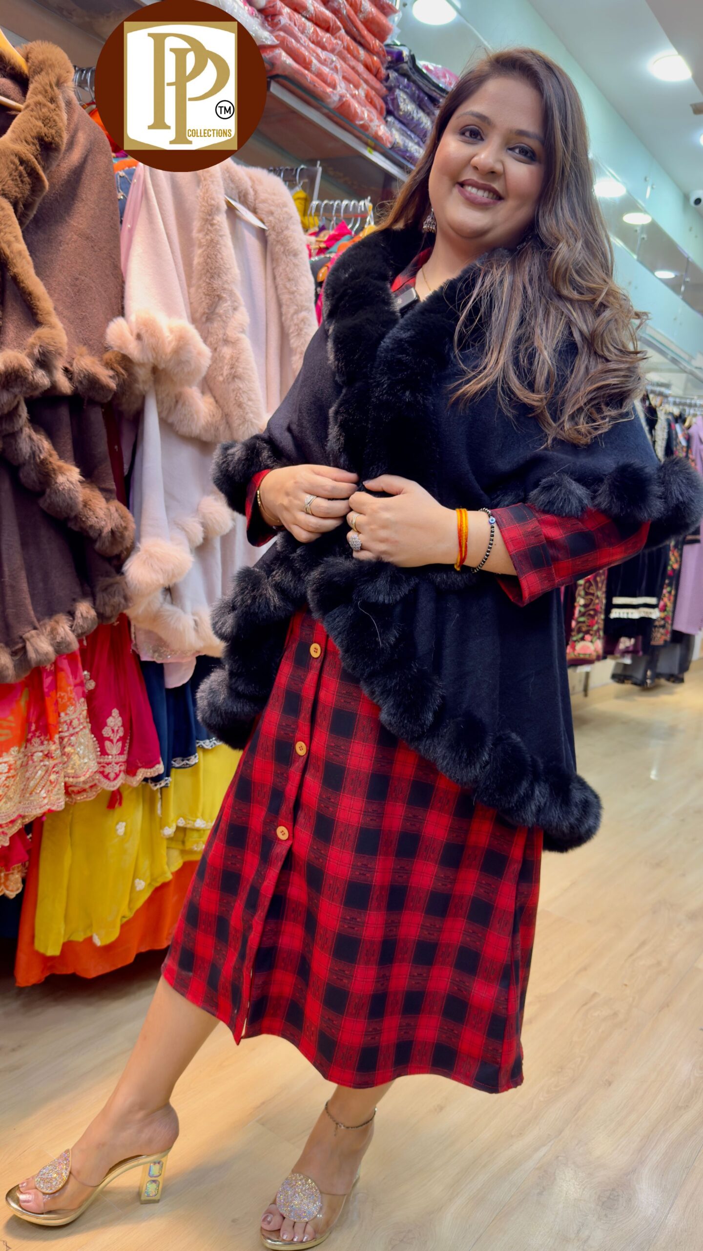 Description : 1pcs Set Fabric Type : wool Style : Ponchu set Work Type : Pom Pom Style.