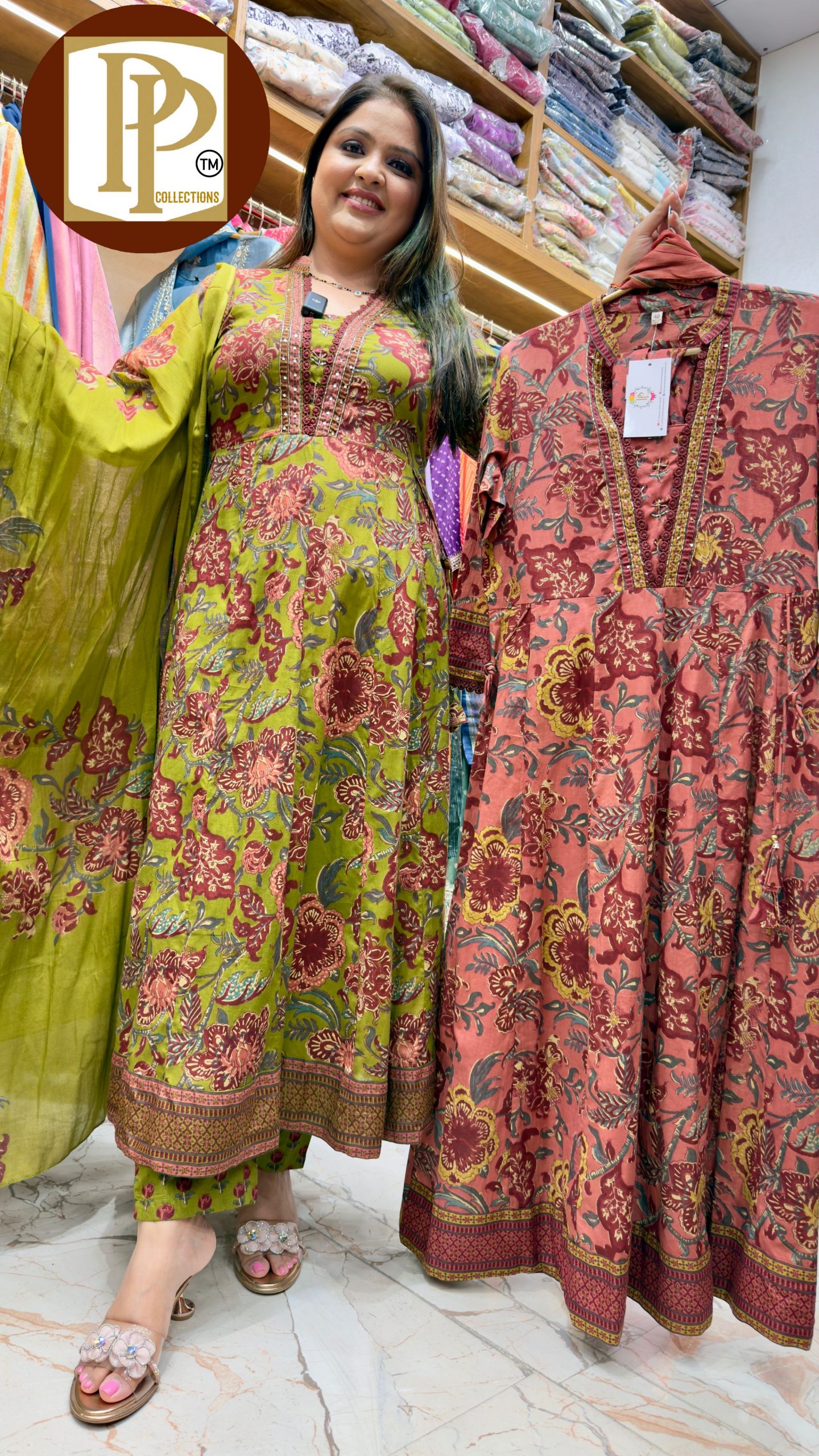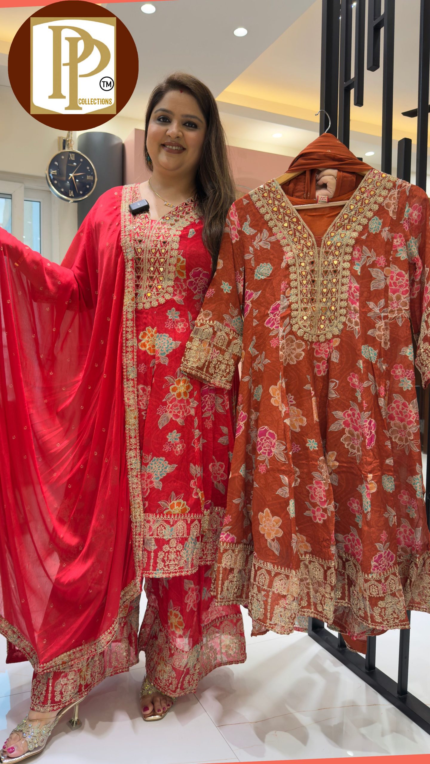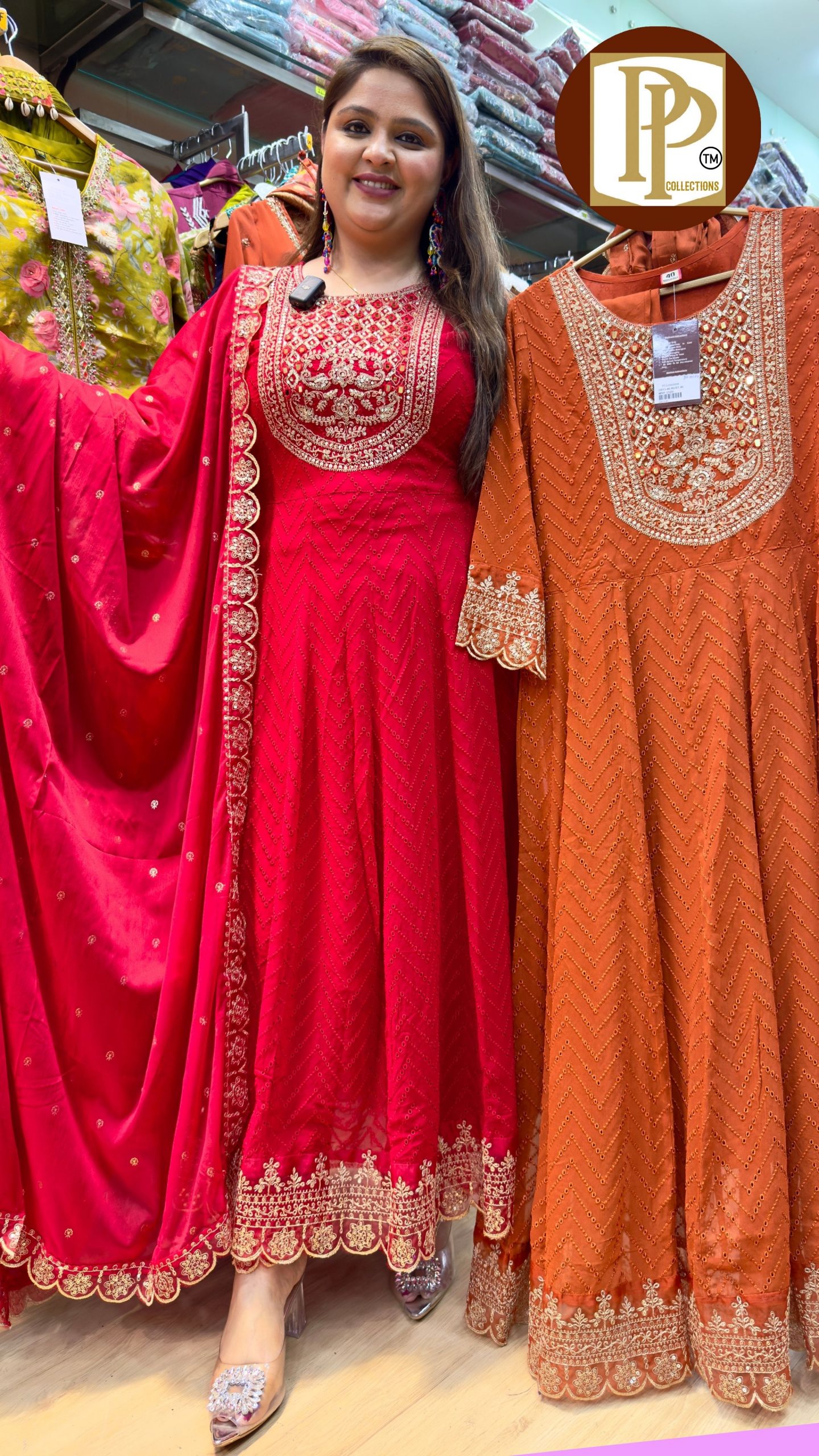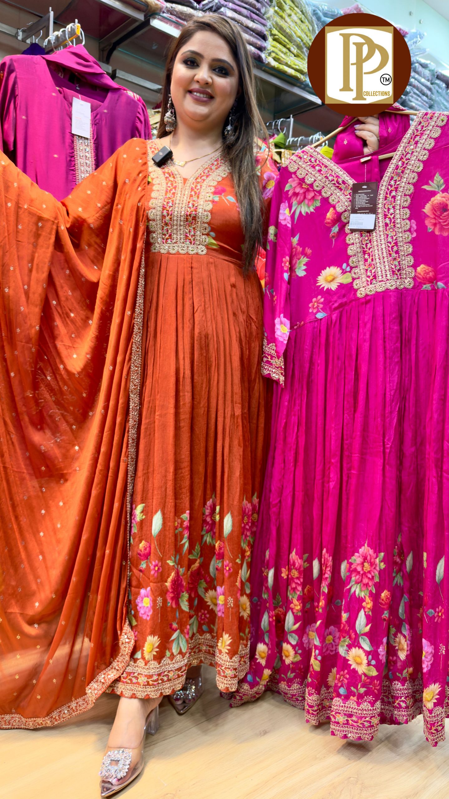 Description : 3piece Anarkali Set Fabric Type : Georgette Style : Anarkali with pant and dupatta Work Type : Heavy Jari work and mirror Work With Matching pent and Dupatta.