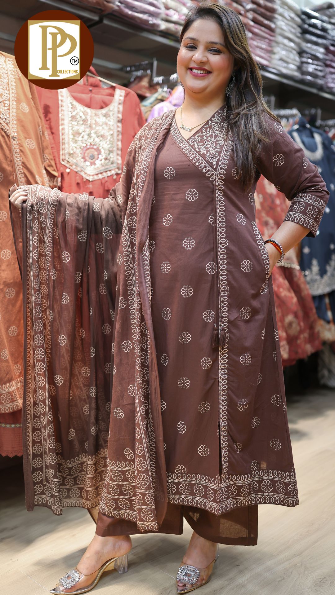 Description : 3pcs pants  set Fabric Type :Cotton Style : Angrakha style Anarkali with pants Work Type : Full Threadwork Sipi work in Anarkali with matching pants & dupatta . SA74 SA75