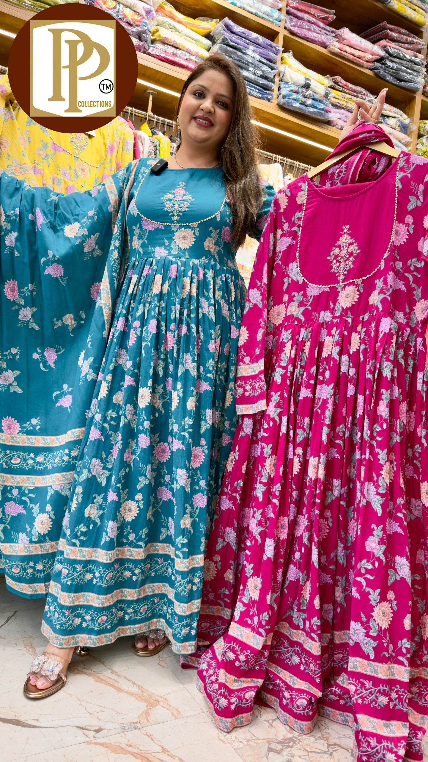Description : 1piece Midy Fabric Type : Cotton Style : Gown Work Type : Printed On Collar Pattern Hand Work.