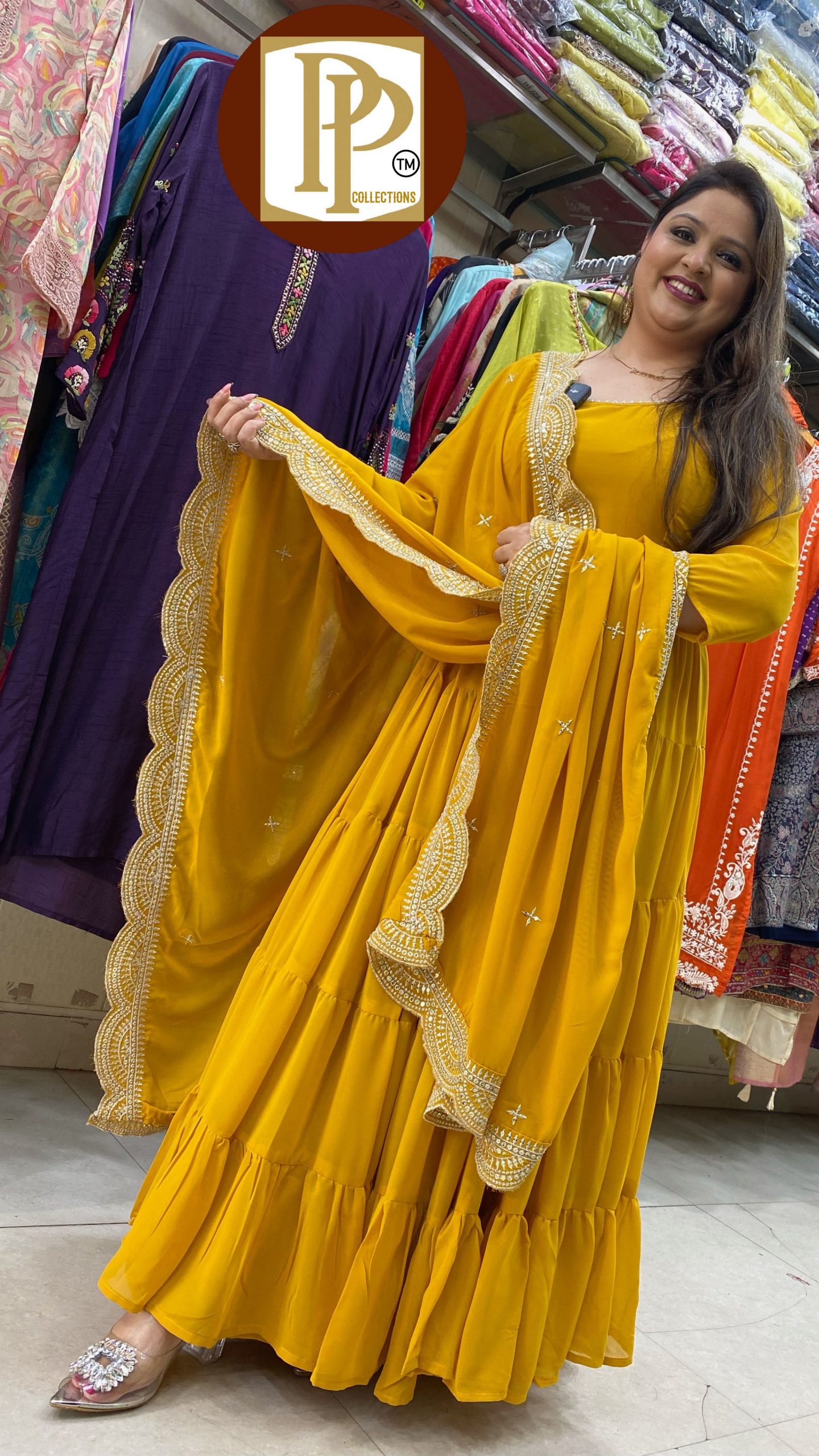 Description : 2piece Gown Fabric Type : Chinnon Style : Stripe Pattern Gown Work Type : Thread & Pearl Work With Matching Cap.