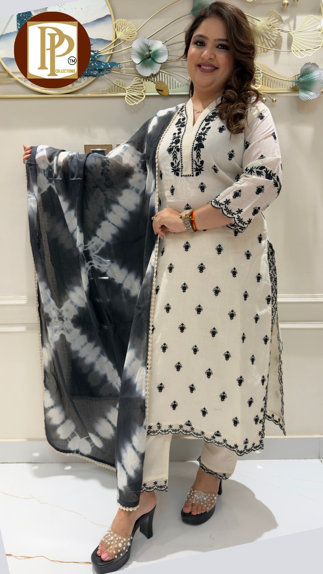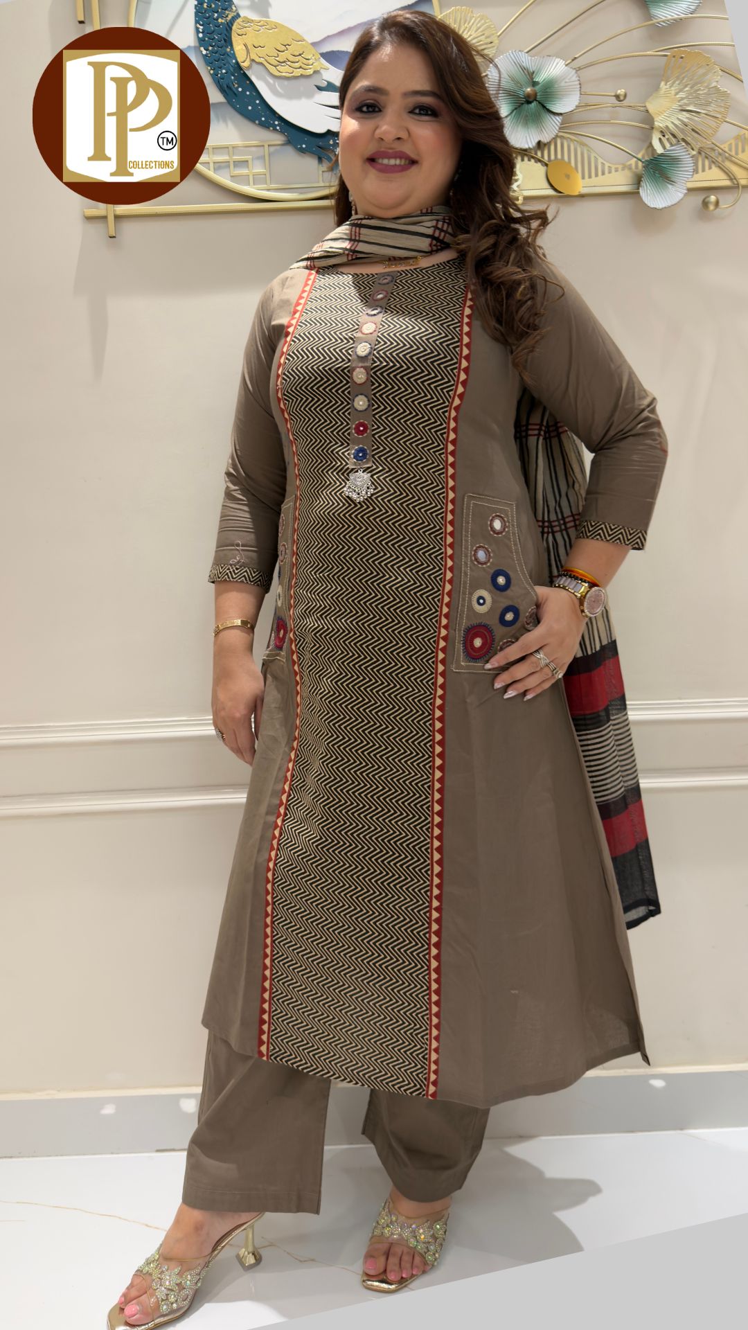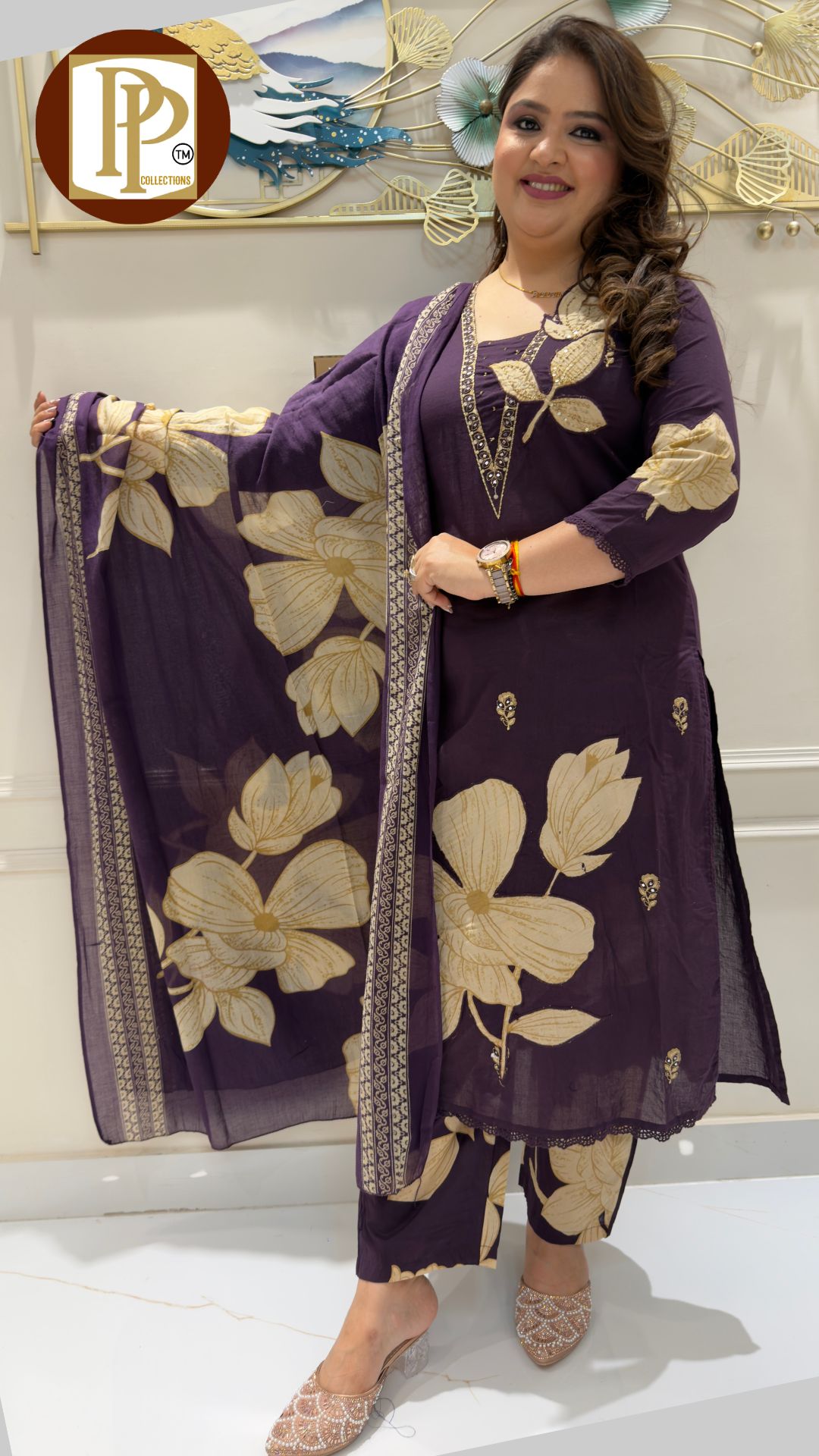 Description : 3pcs Divider set Fabric Type : Cotton Style : Kurta with Divider Work Type : Full heavy Threadwork print work Sipi work in kurta with matching Divider & dupatta . G768 G767