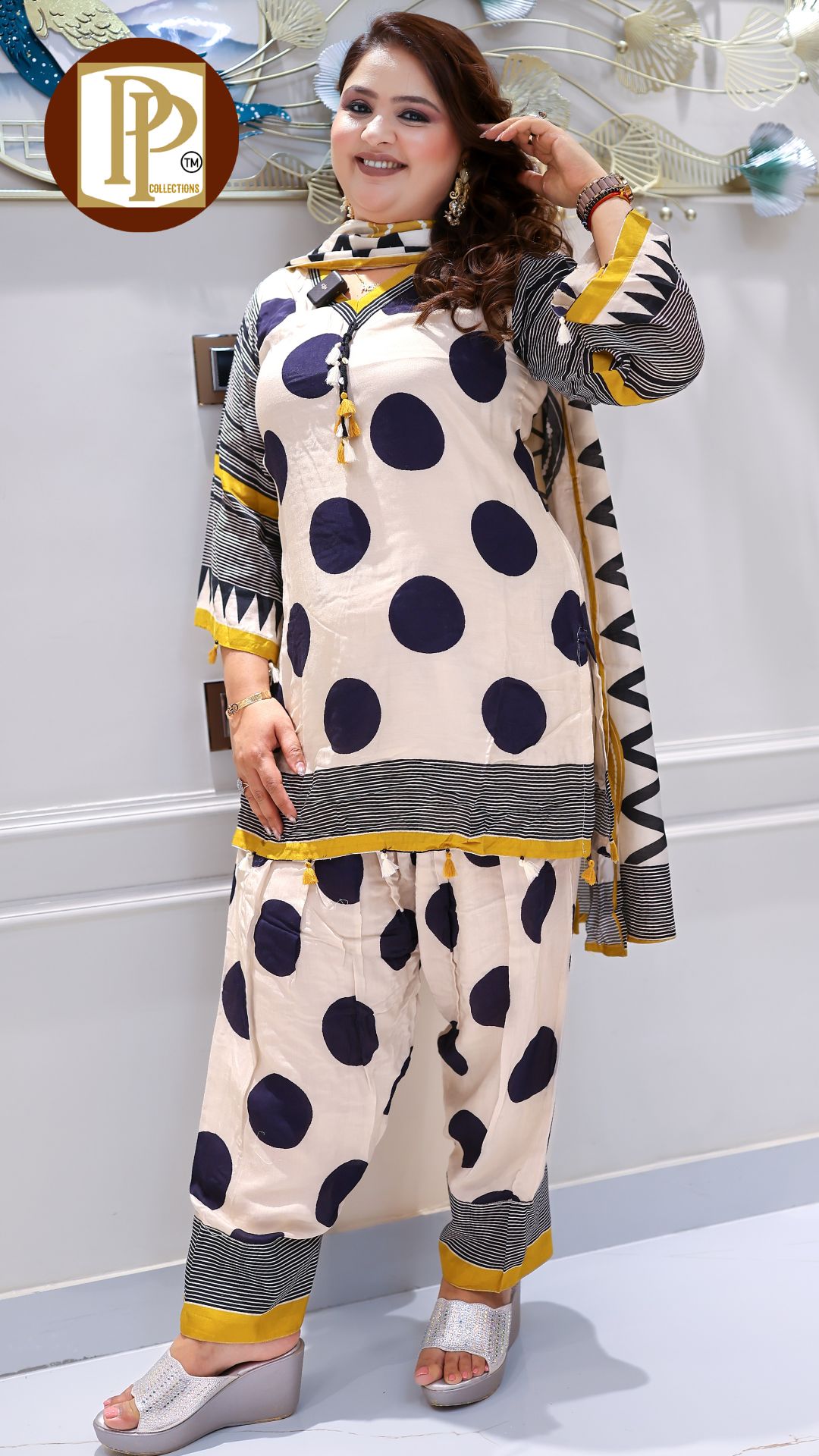 Description :3pcs Pant set Fabric Type : Muslin Style : Kurta with Pants Work Type : Full heavy handwork Stone work Laces work All over printed Kurta with Matching Pants & Printed Dupatta. W128