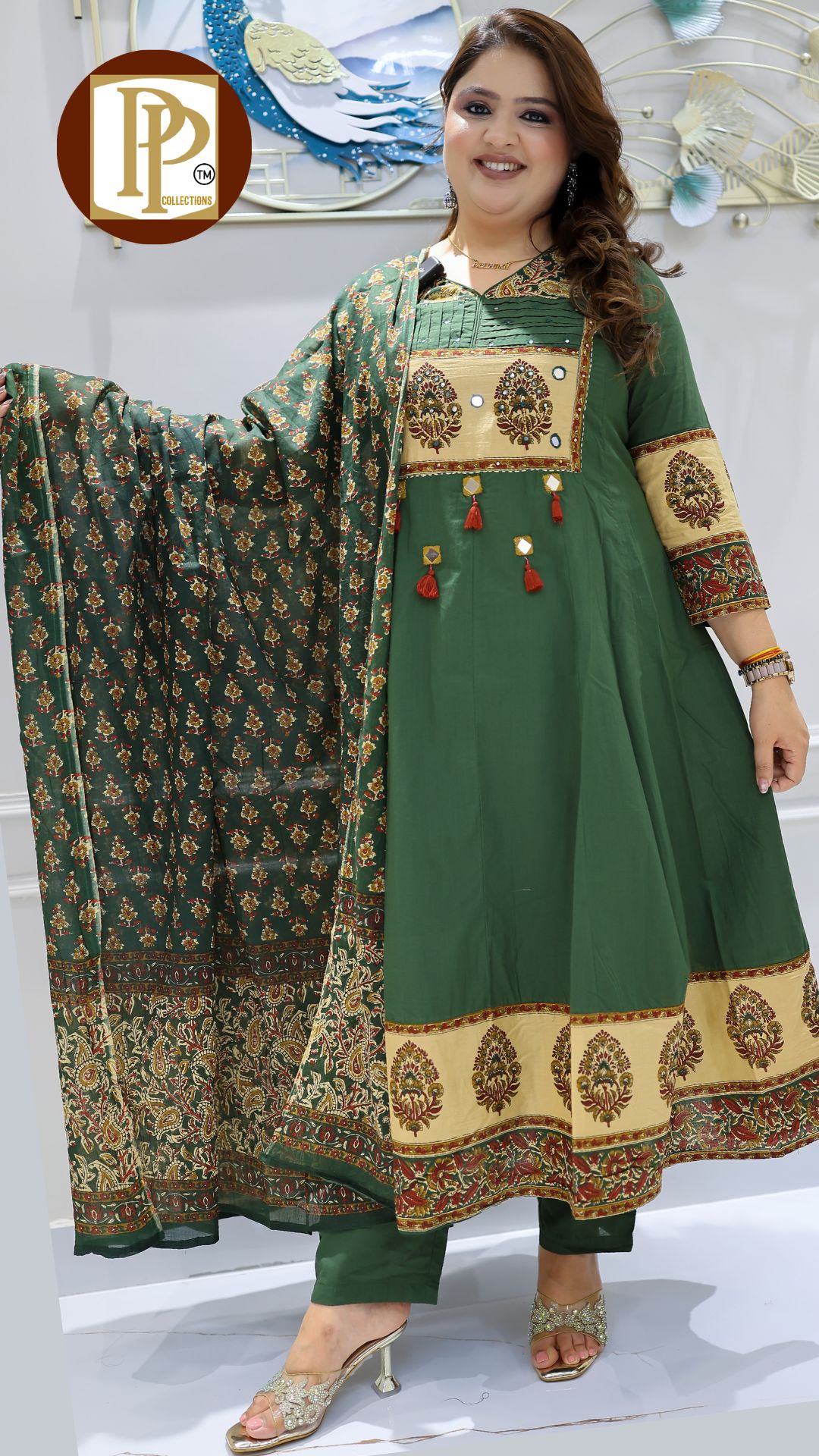 Description : 3pcs Pant set Fabric Type : Cotton Style : Anarkali with pants Work Type : all over print work Full heavy threadwork original mirror work in Anarkali with matching Pants & dupatta. Mk73 Mk74 Mk75
