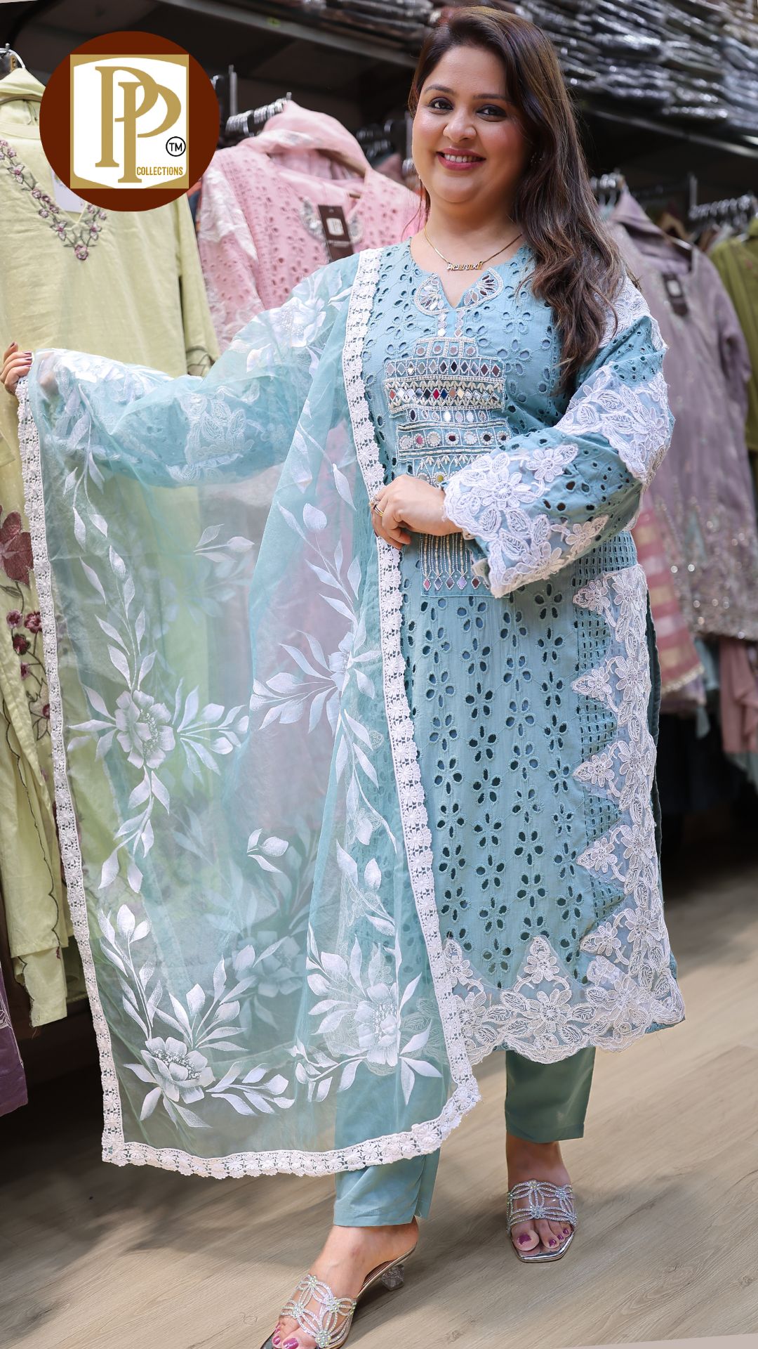 Description : 3pcs pant set Fabric Type : cotton Style : kurta with pants Work Type : full heavy siffli work original mirror work in kurta with matching pants & dupatta . kN03 KN04