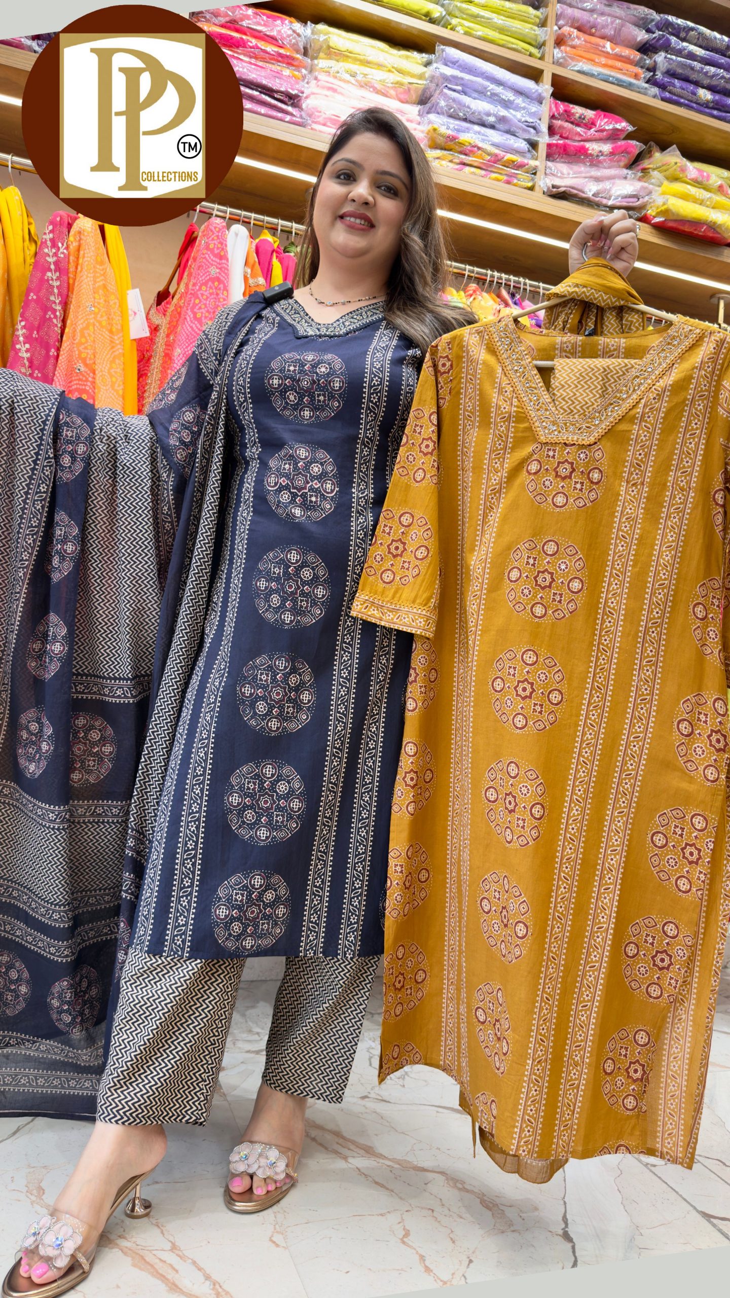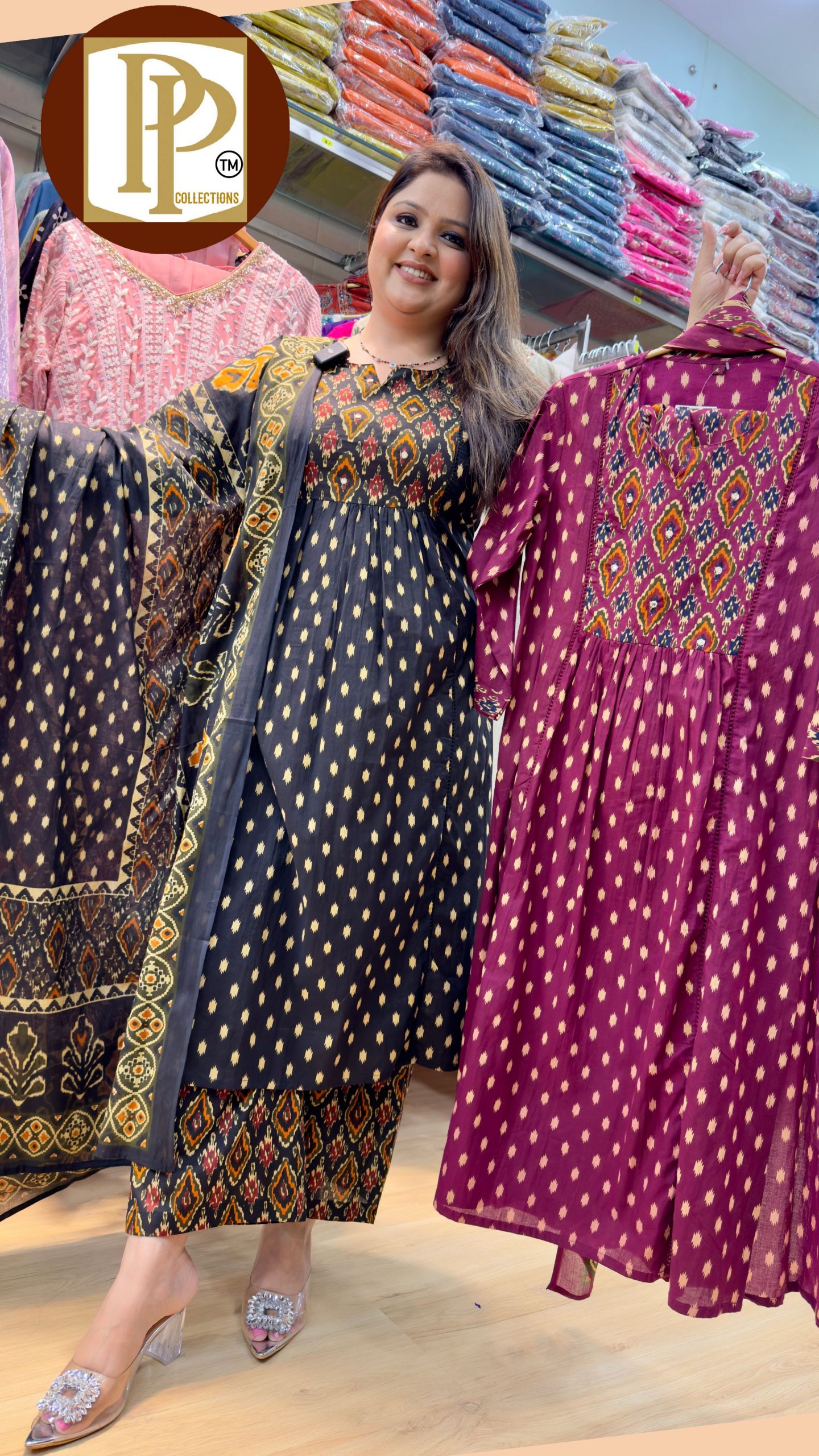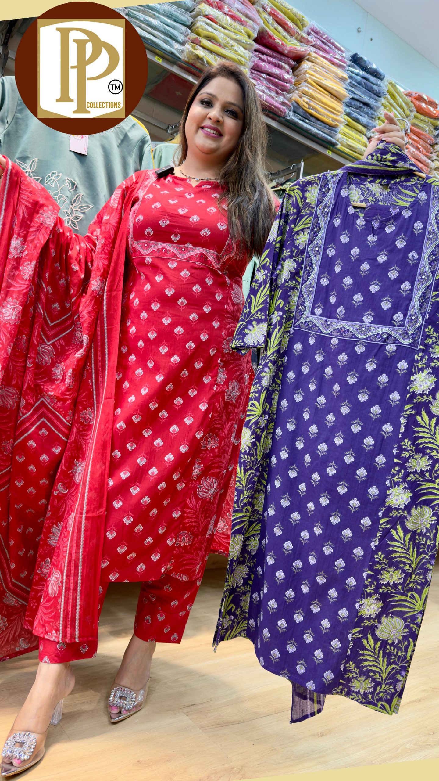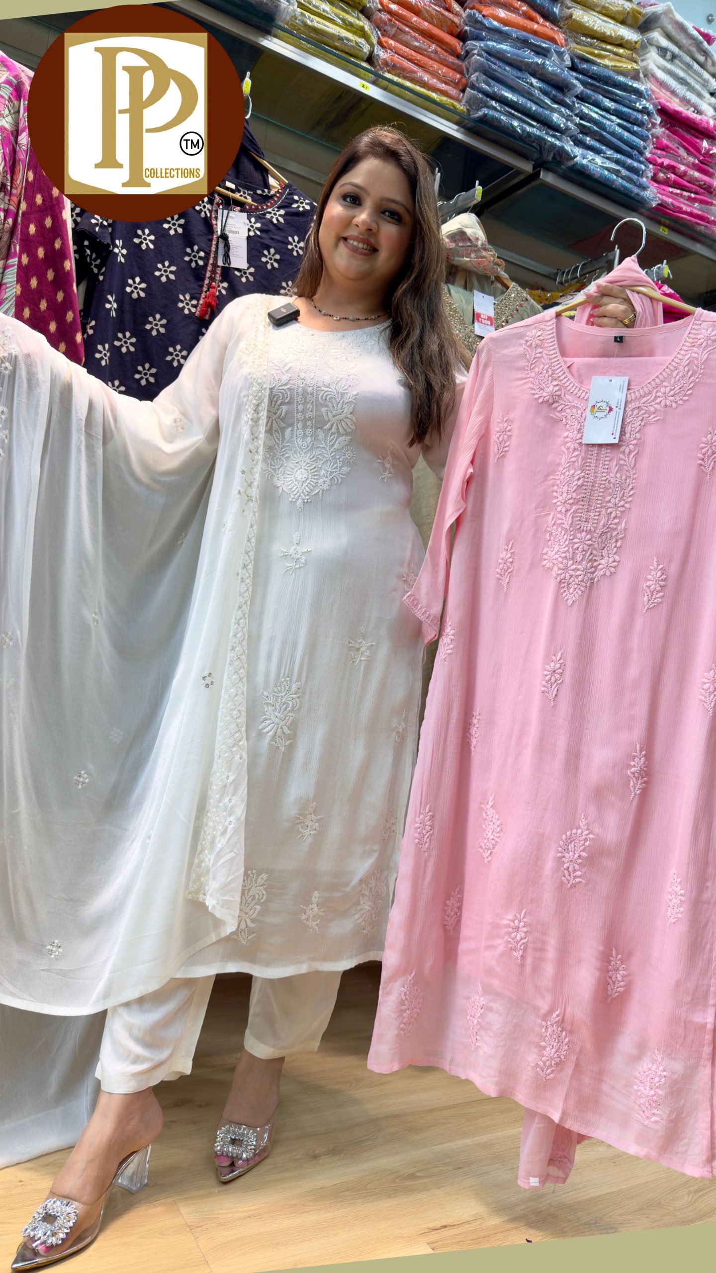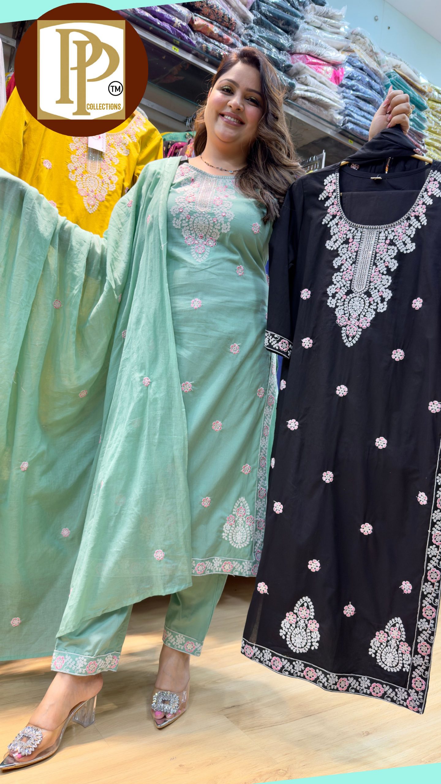 Description : 3piece set Fabric Type : Organza Style : Straight Set Work Type : Printed On Zari & Sippy Hand Work With Matching Dupatta.