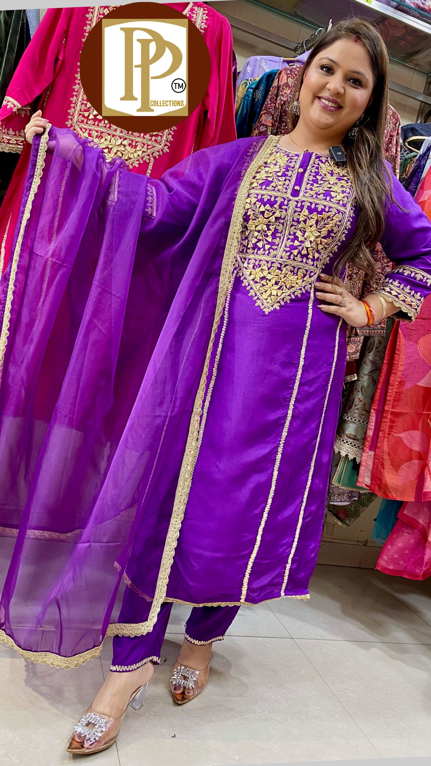 Description : 3piece Pant Set Fabric Type : Ice Velvet Style : Stright Set Work Type : Full Have Thread & Sippy Work With Matching Shawl.