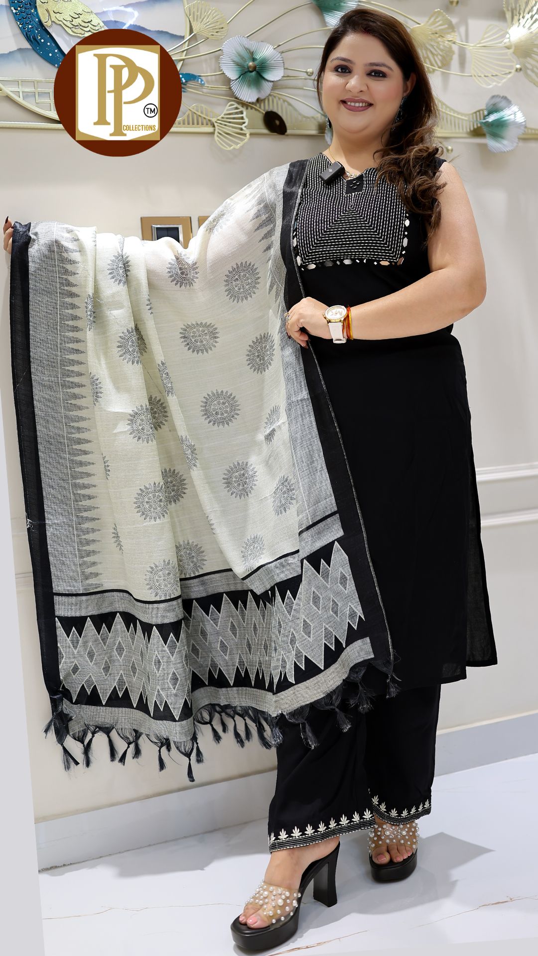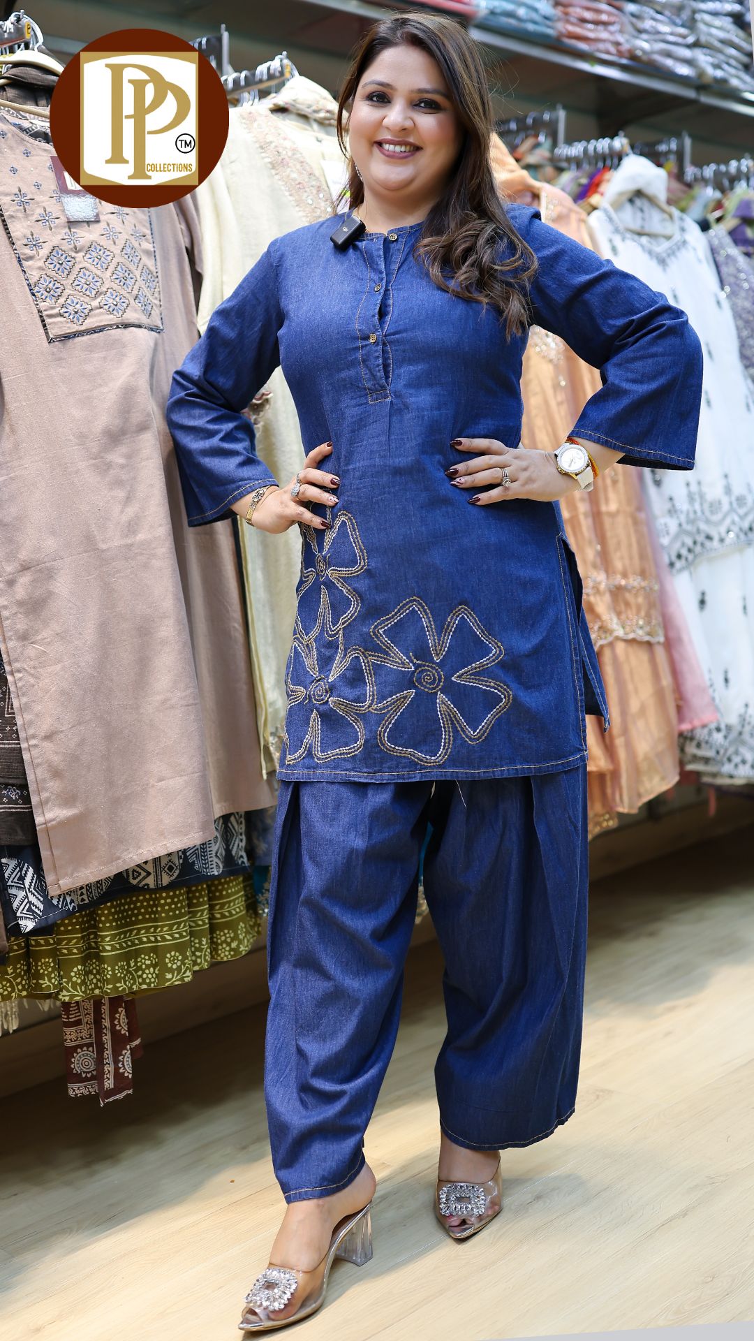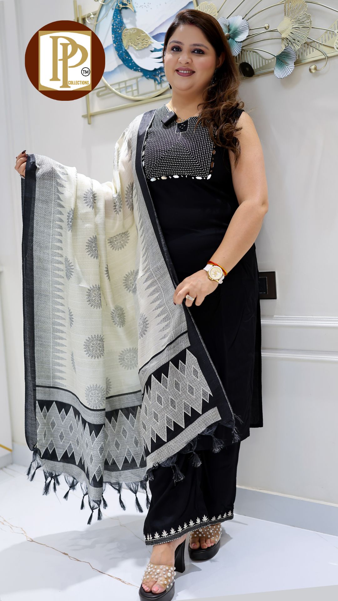 Description : 3pcs palazzo set Fabric Type : Cotton Style : Aline Kurta with Palazzo Work Type : Full heavy threadwork handwork original mirror work in kurta with matching Pants & dupatta, G846