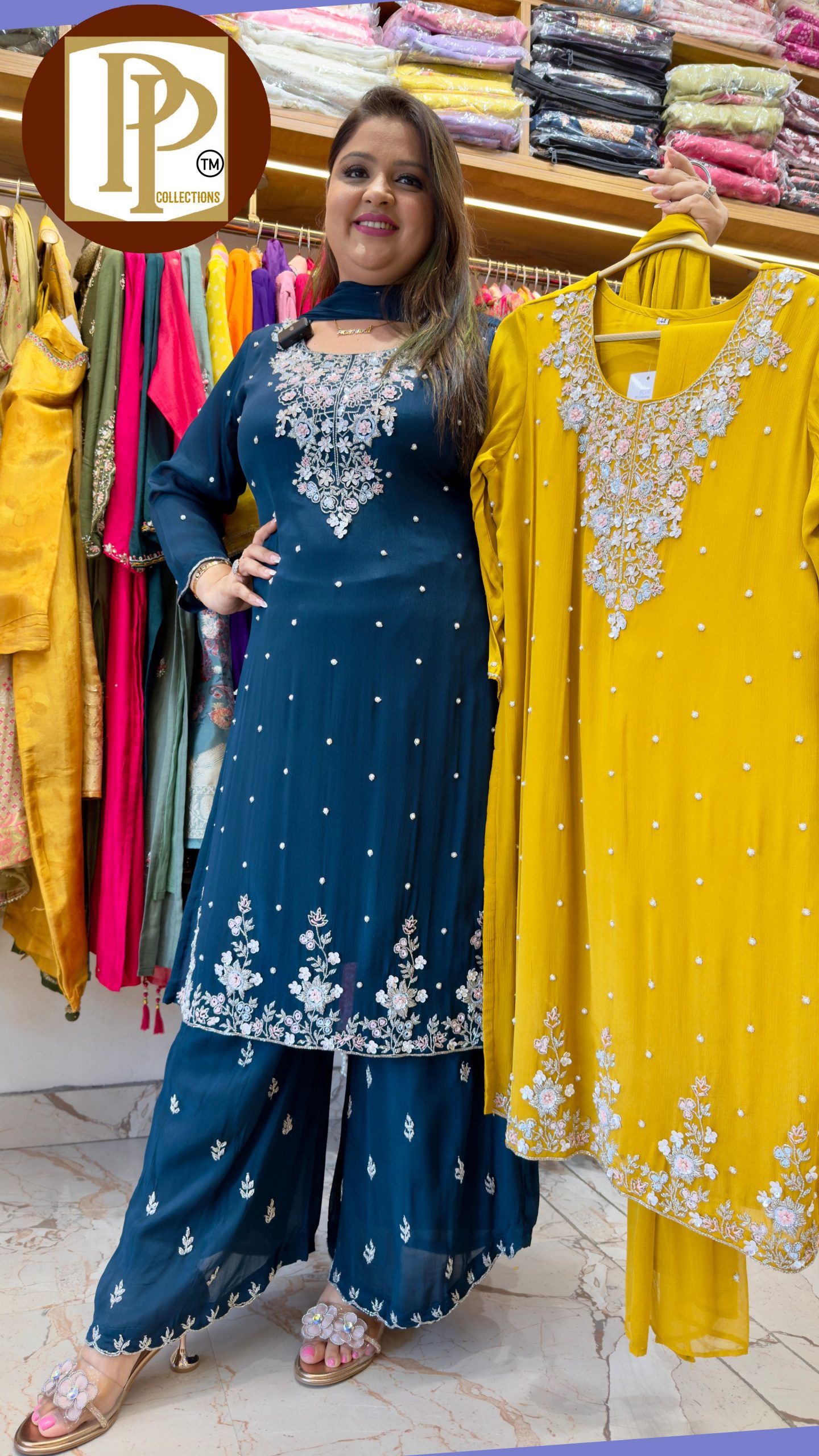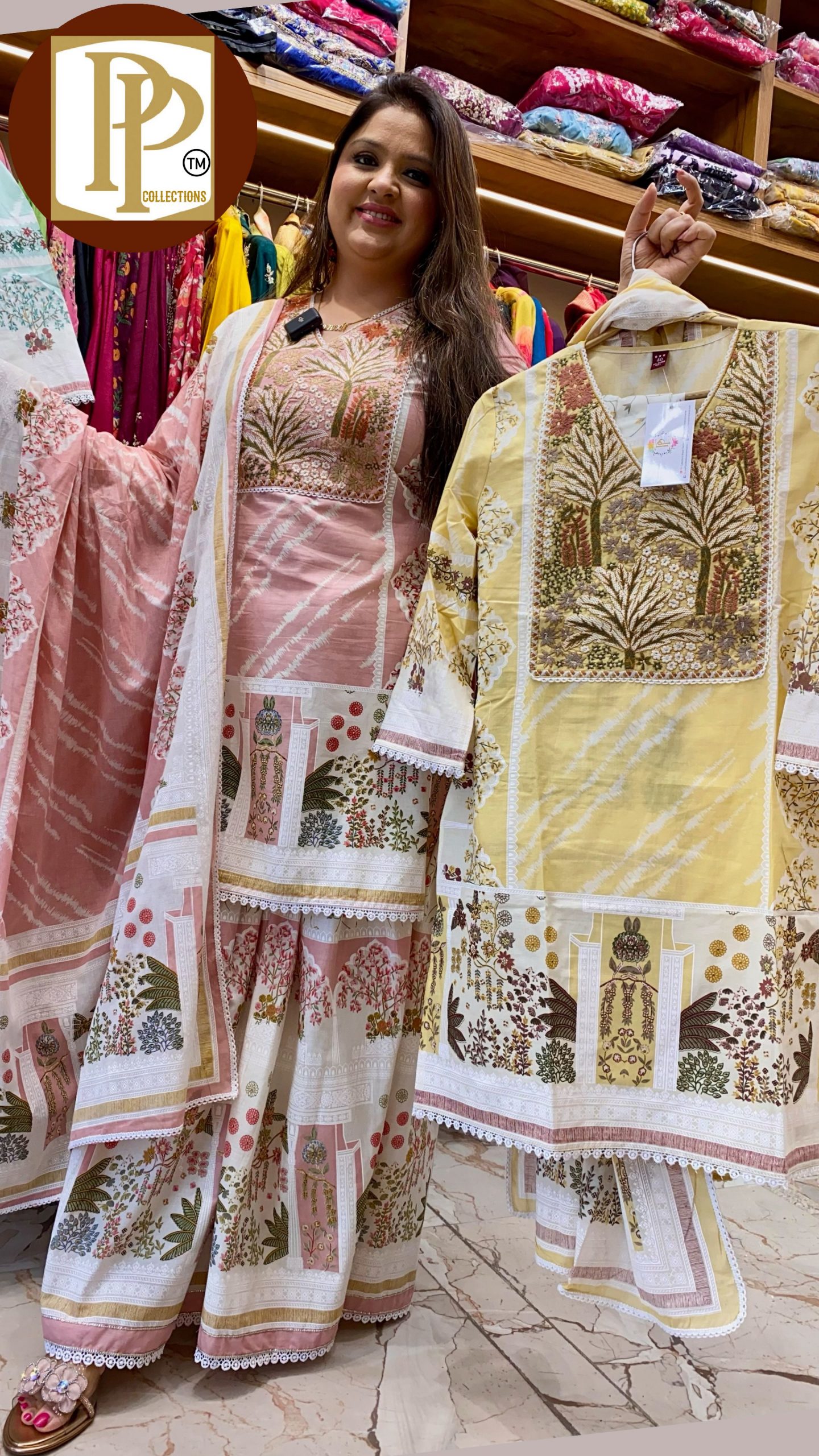 Description : 3piece Sharara Set Fabric Type : Cotton Style : Short Kurta Work Type : Printed On Thread & Lease Work With Matching Dupatta.
