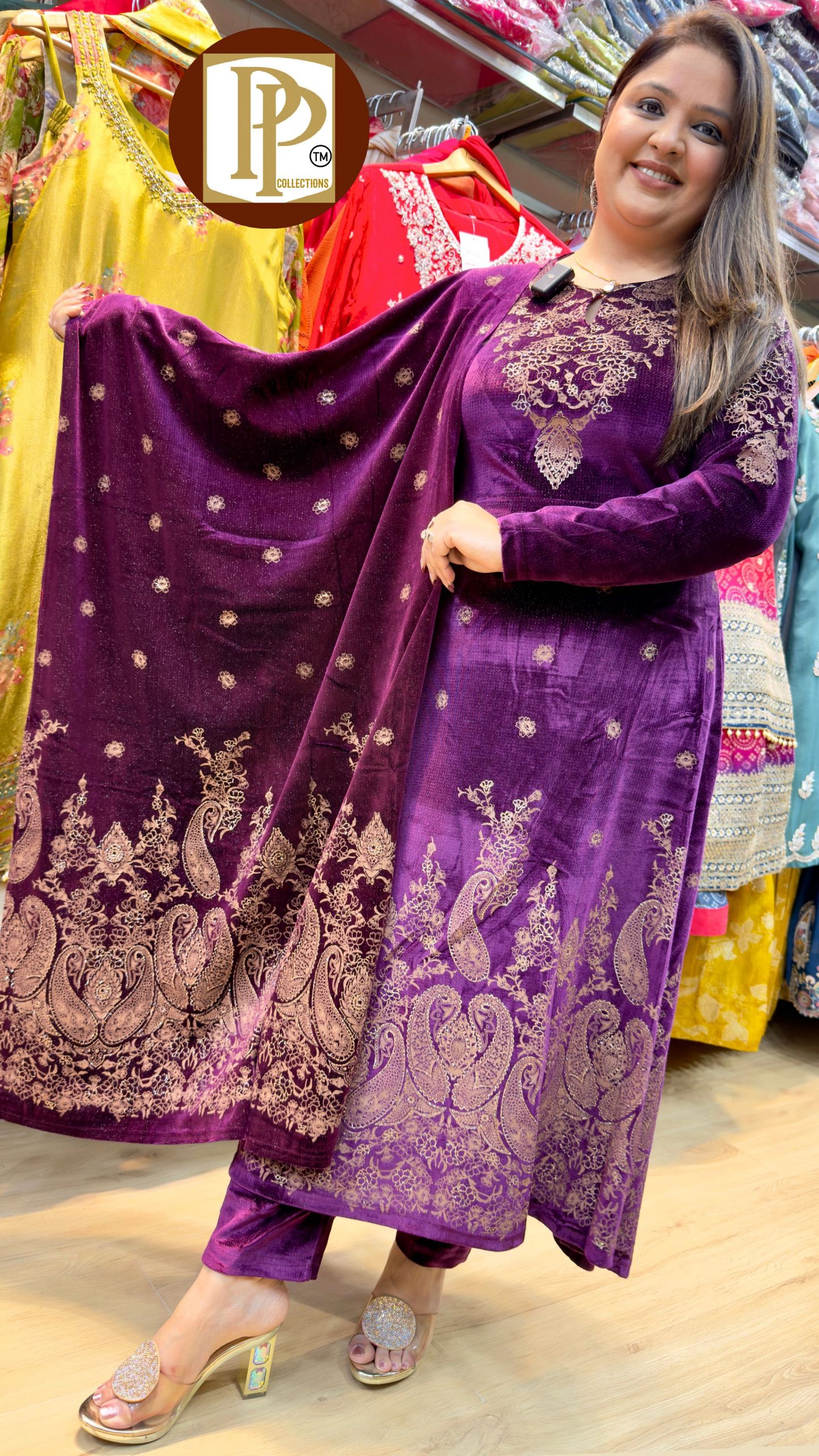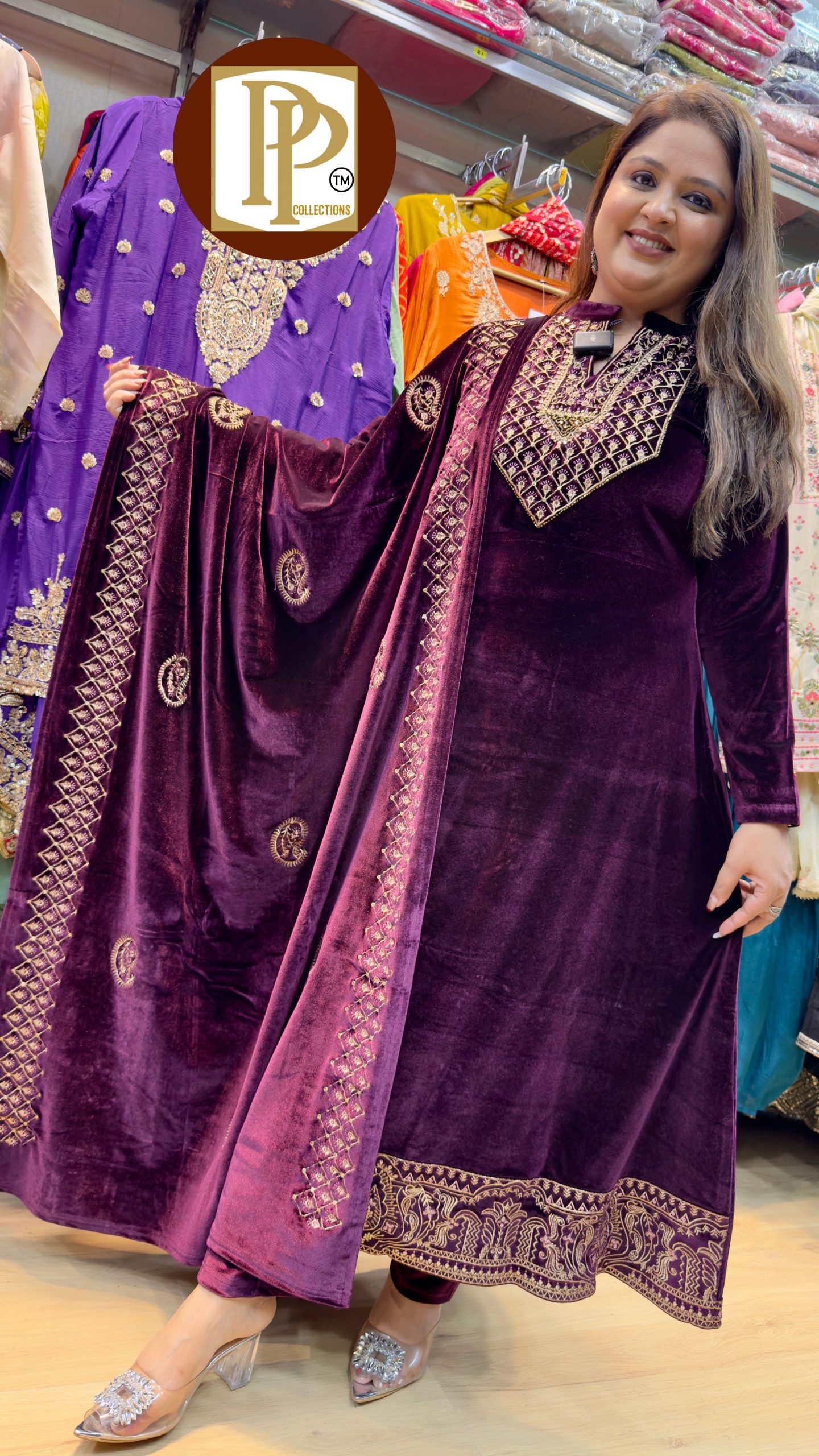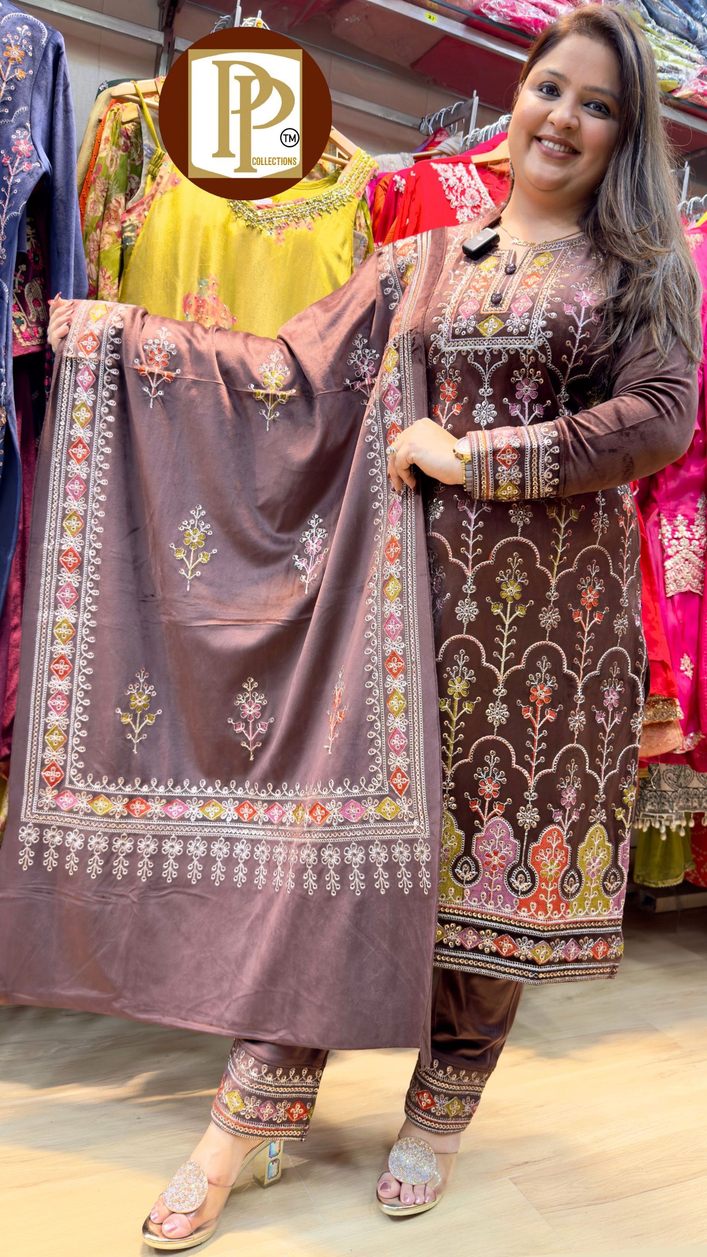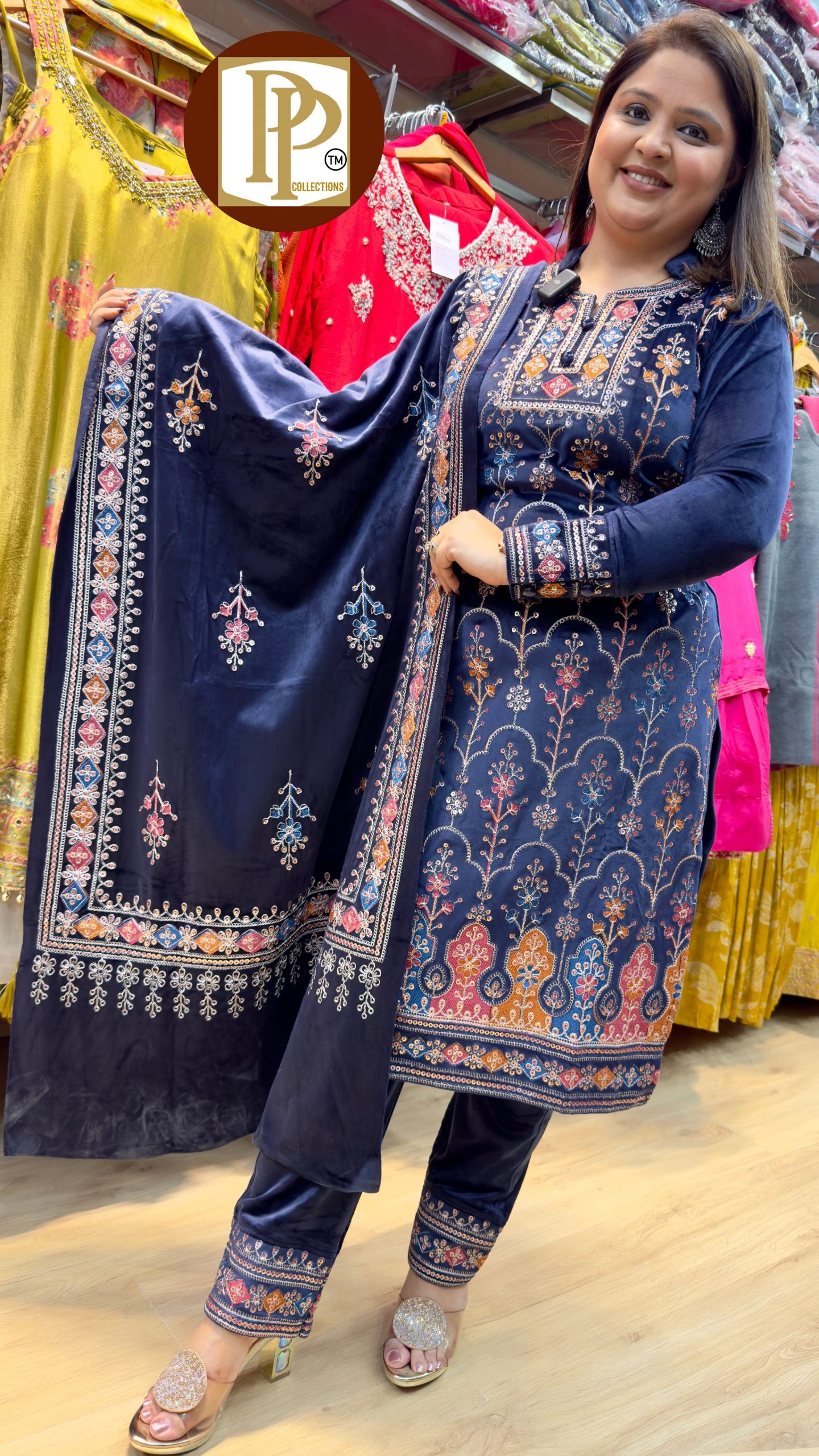 Description : 3 pcs cord set Fabric Type : velvet Style : inner & jacket with pants Work Type :embroidery in jacket with matching inner & matching pants