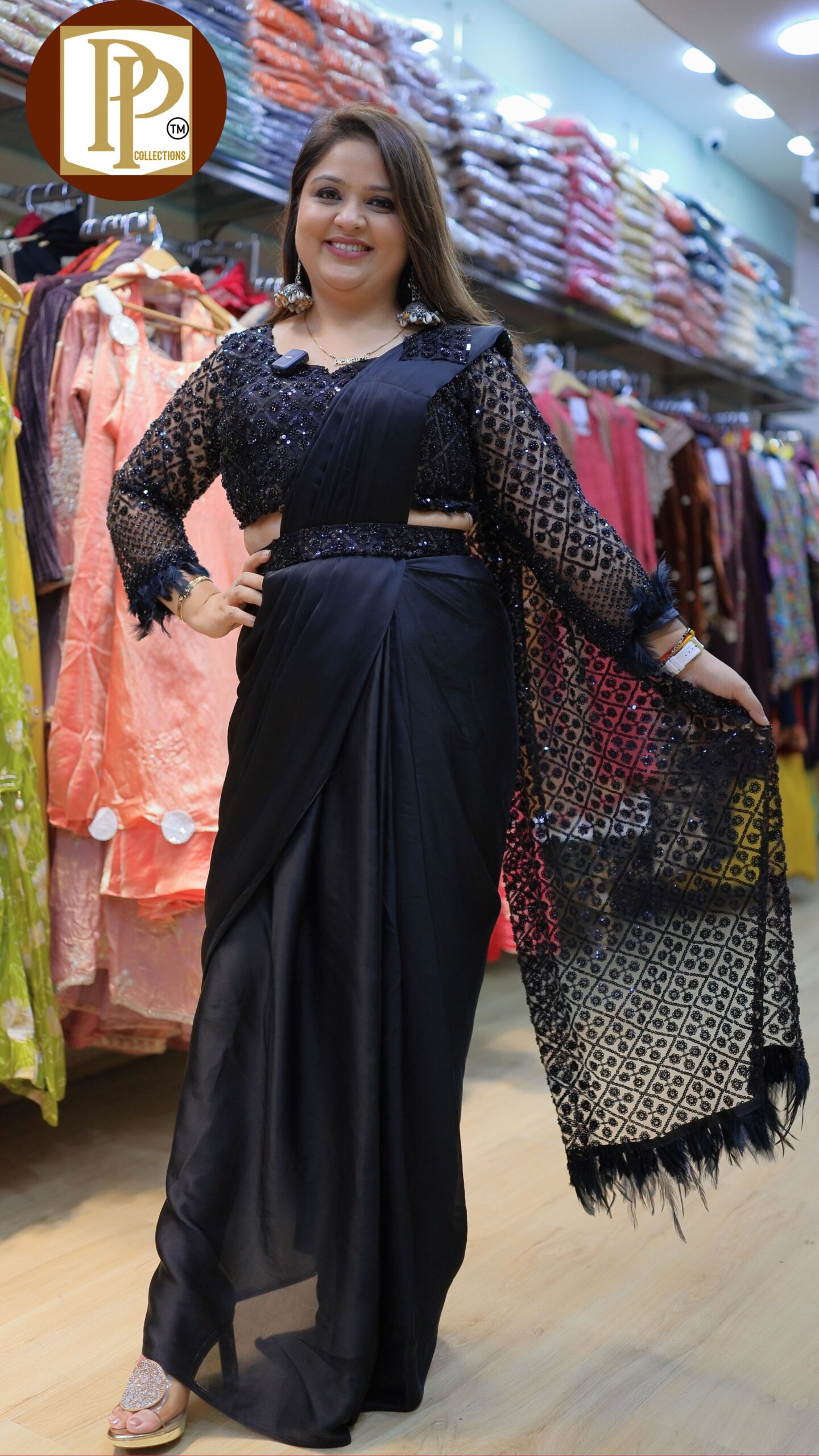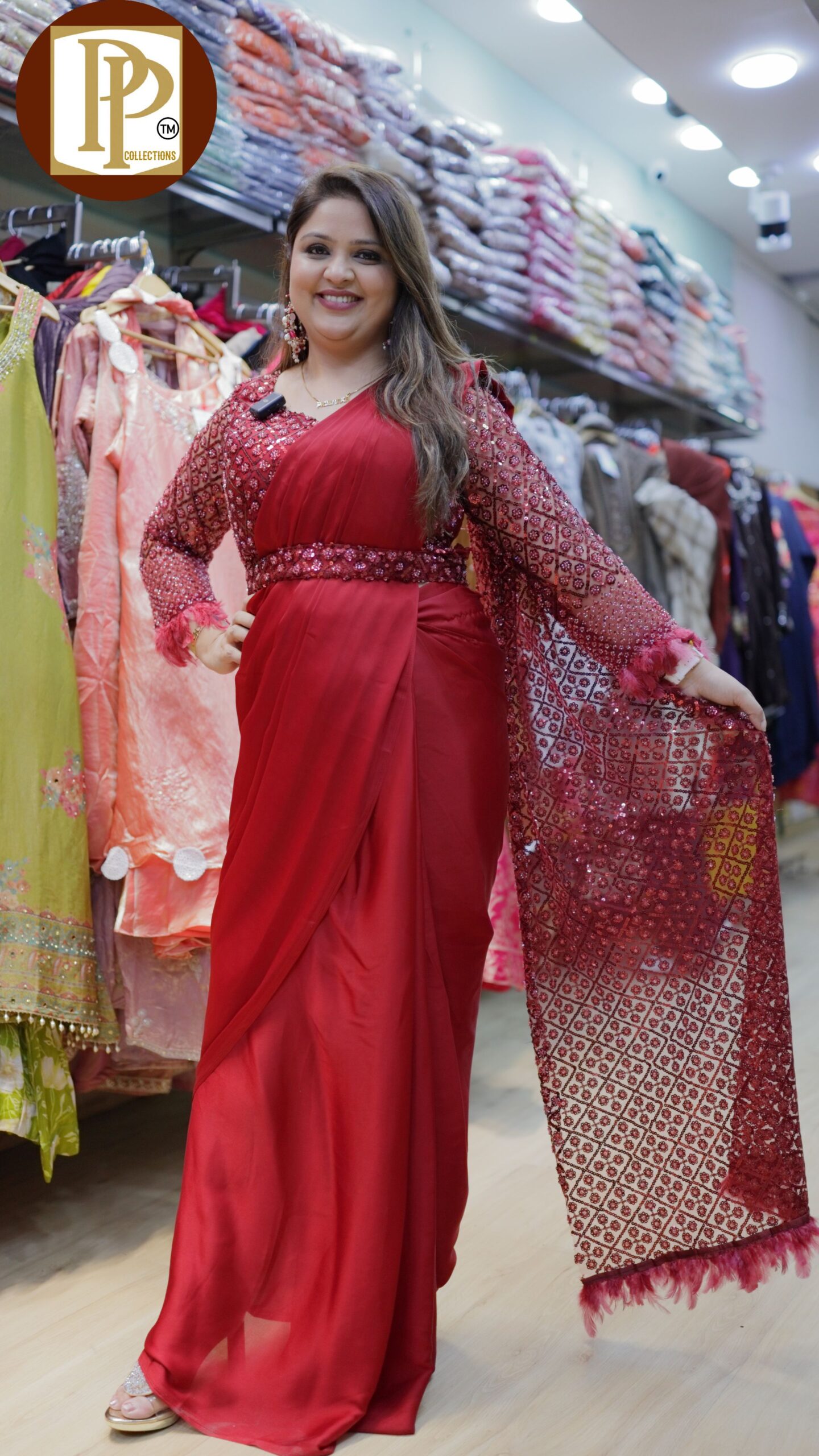Description : 3pcs Skirt Set Fabric Type : Crepe Style : Drape Saree Work Type : Full Heavy Sippy Work On Blouse & Pala With Matching Balt.