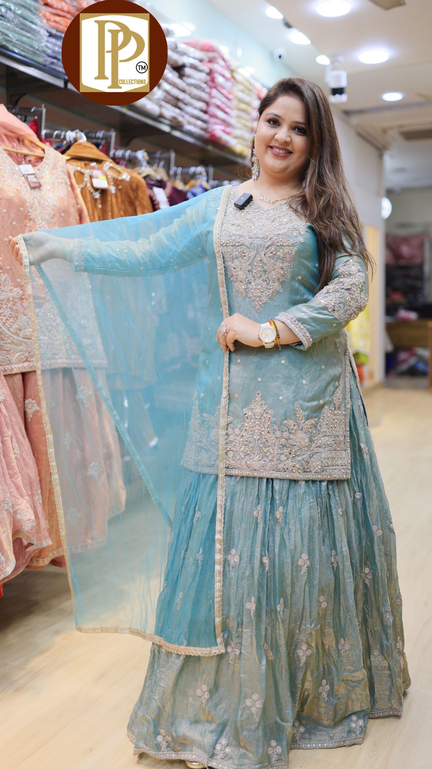 Description : 3pcs Plazzo Set Fabric Type : Tiusse Style : Short Kurti & Plazzo Set Work Type : Hand Work With Matching Dupatta.