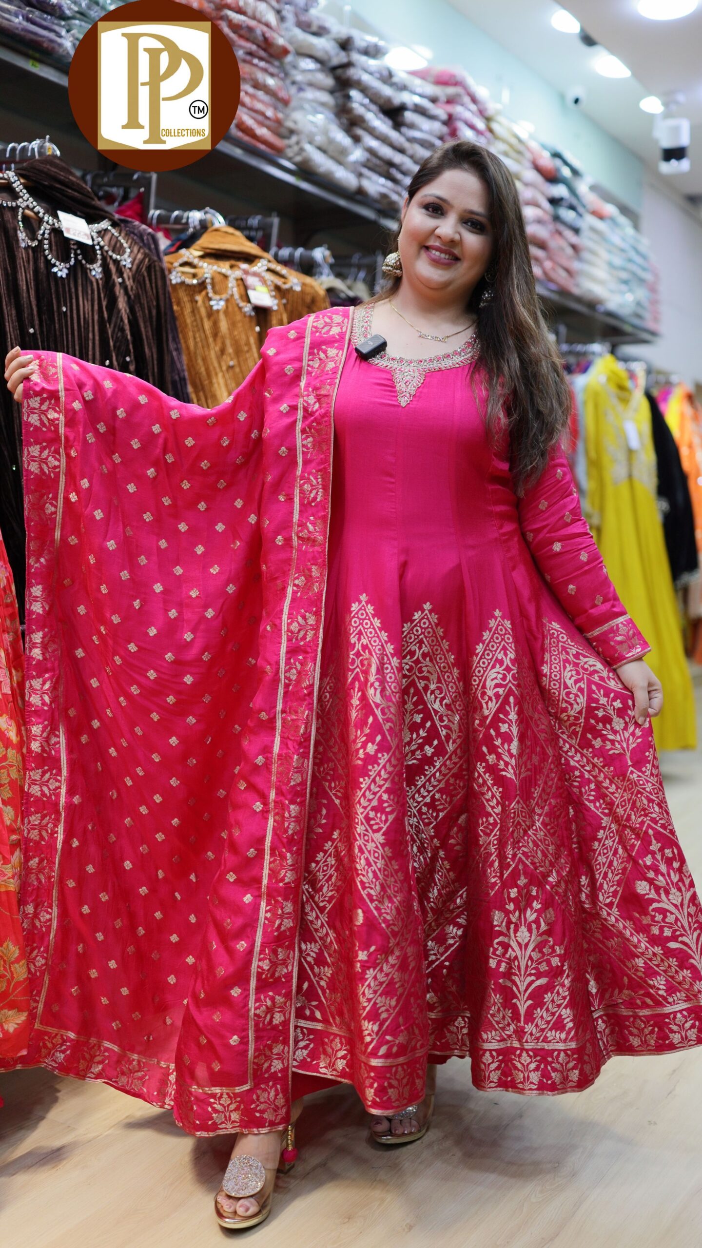 Description : 3pcs Pant Set Fabric Type : Silk Style : Anarkali Set Work Type : Banarasi Jacquard Print On Hand Work With Matching Banarasi Dupatta.