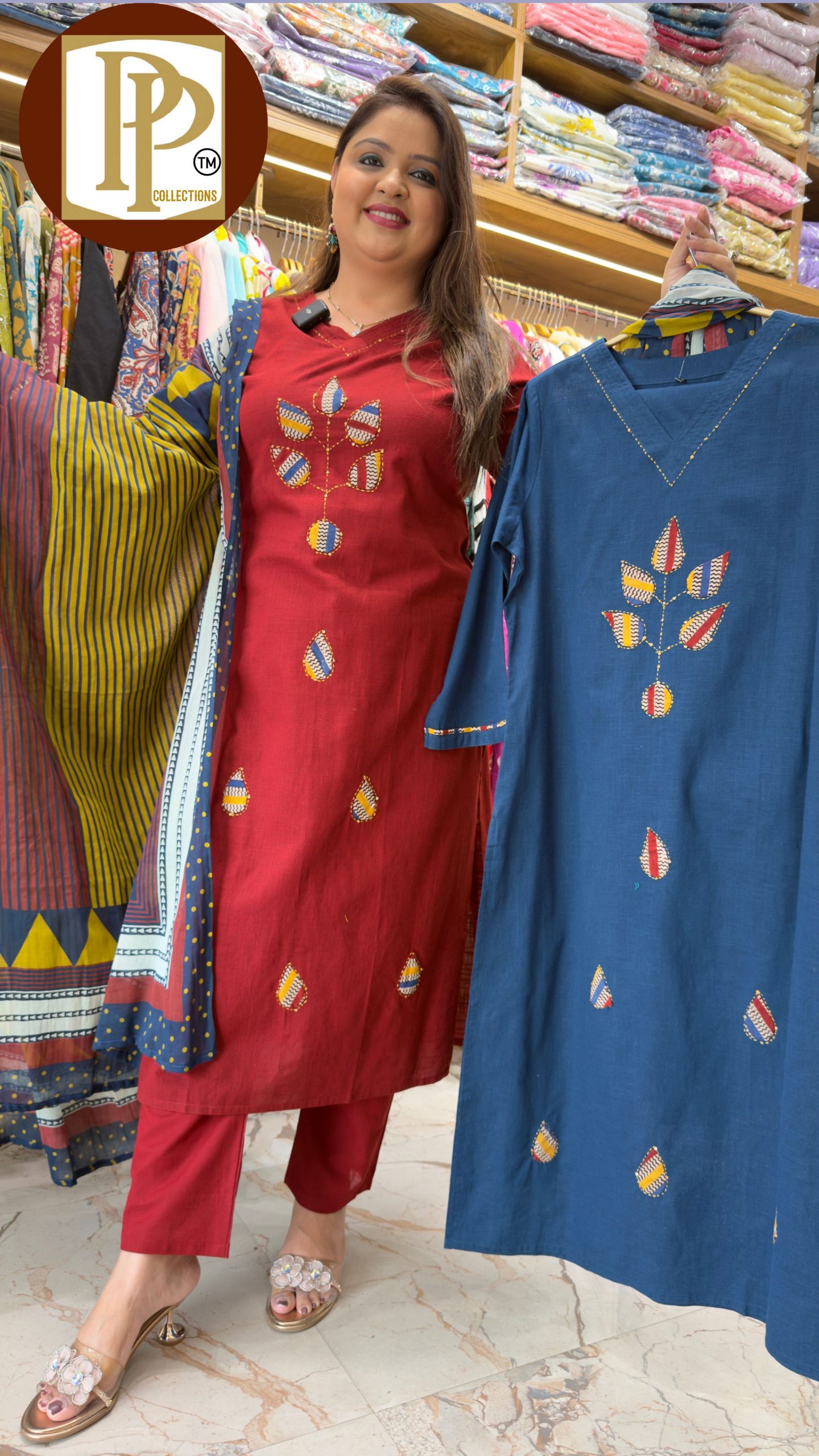 Description : 3piece Plazzo Set Fabric Type : Cotton Style : Straight Set Work Type : Thread Work With Matching Printed Dupatta.