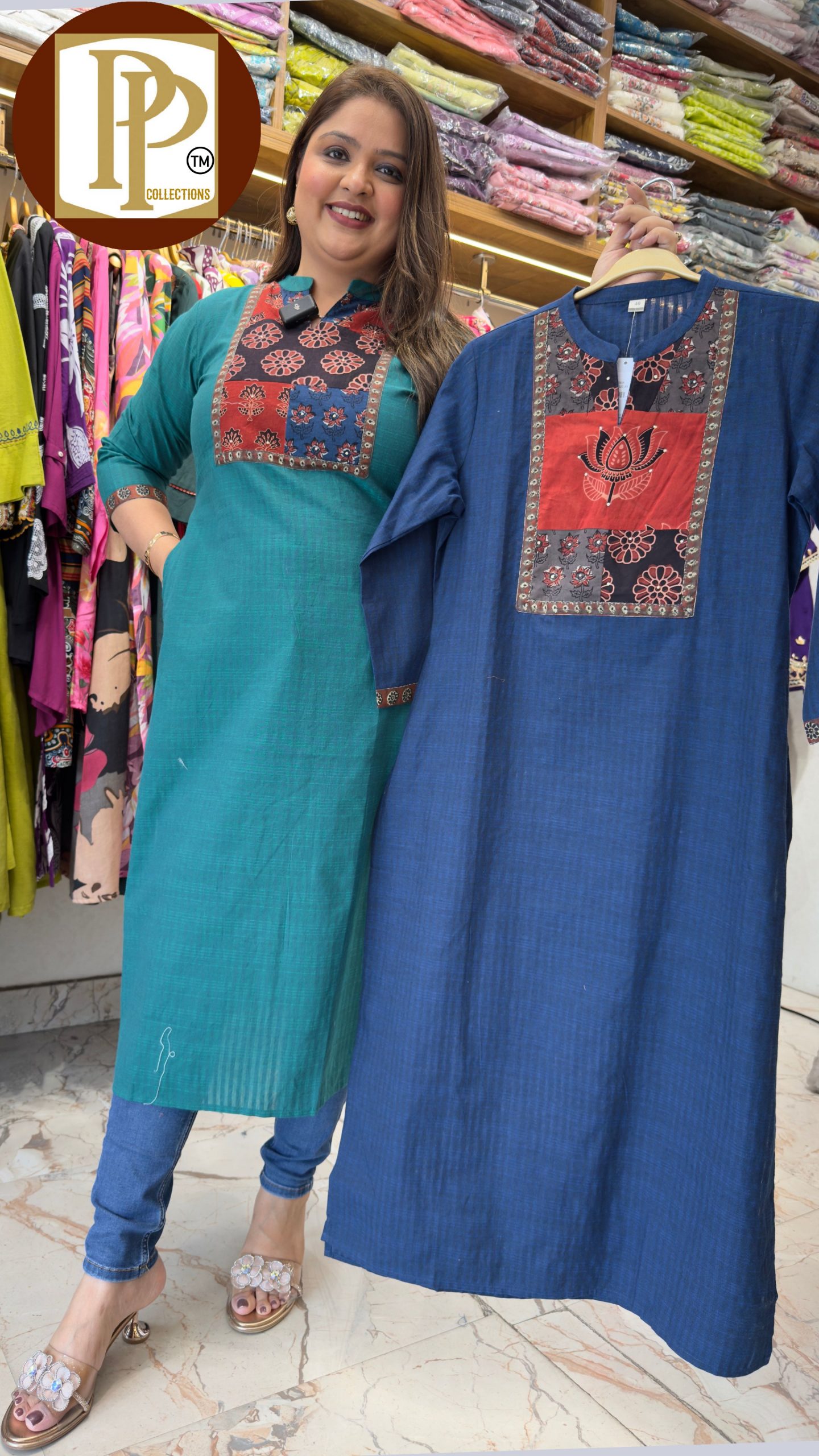Description : 1piece Kurti Fabric Type : Cotton Style : Kurti Work Type : Hand Work With Pocket.