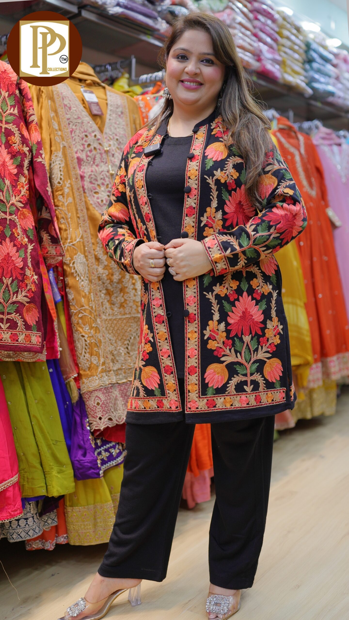 Description : 3pcs Anarkali set Fabric Type : velvet Style : shawl with Anarkali Work Type : full emboss print in an Anarkali & matching shawl and pants .