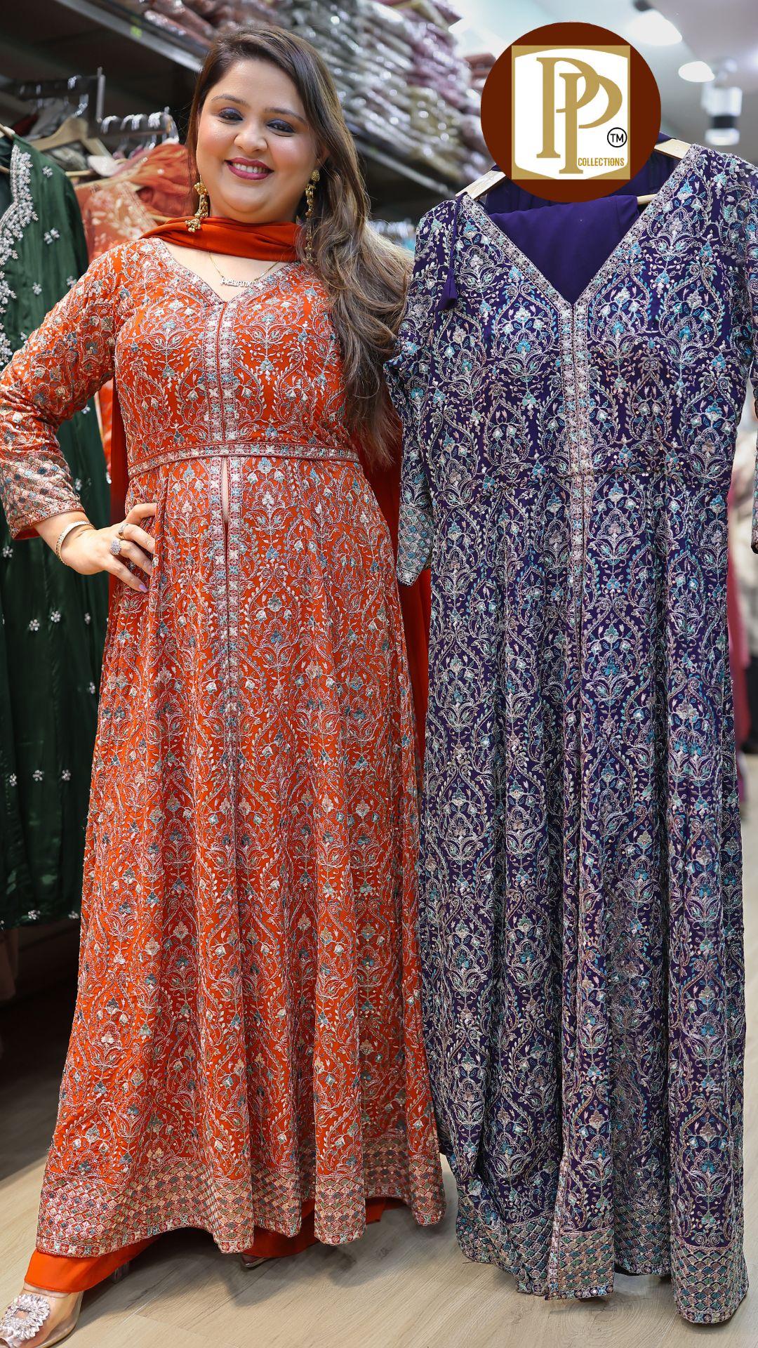 Work Type : full all over threadwork in front slit kurta with matching divider & dupatta .