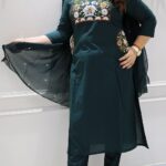 Work Type : Full heavy threadwork Embroidery in kurta with pants & dupatta.