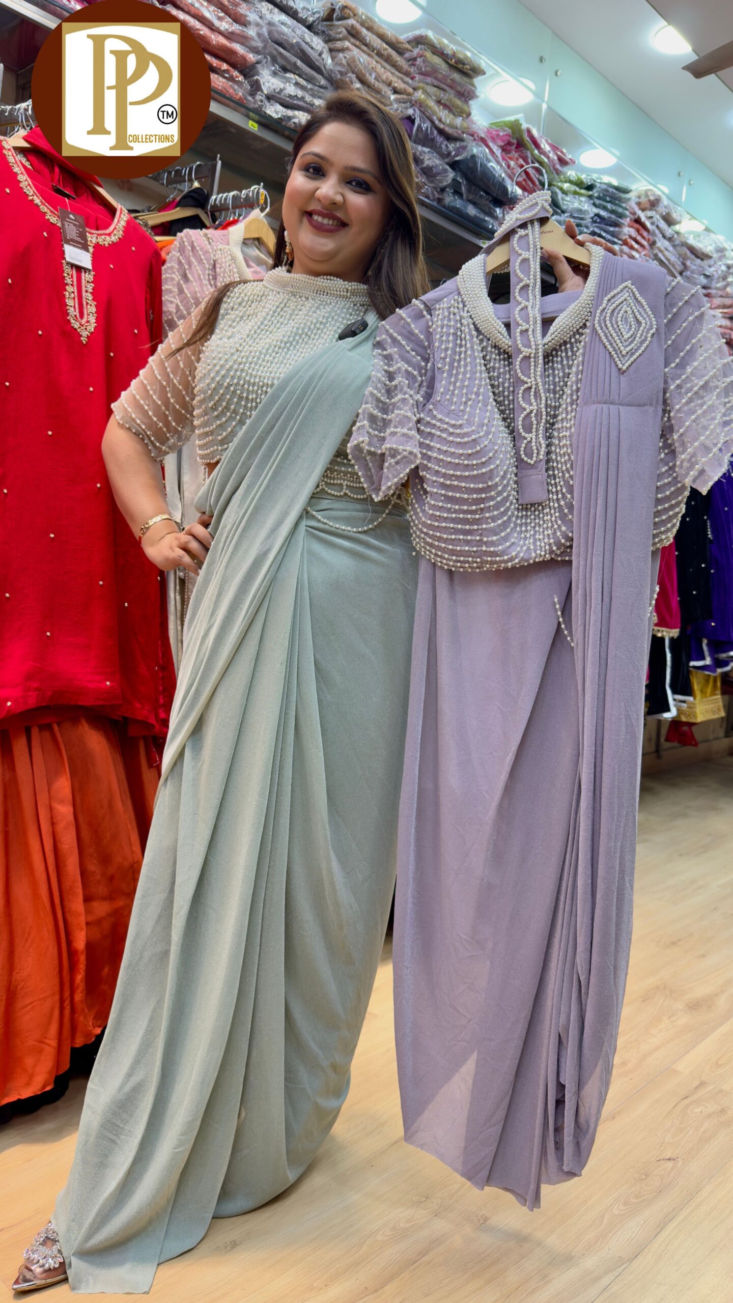 Work Type : Heavy Pearl Work On Blouse With Matching Balt.