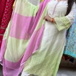 Work Type : Hand & Laces Work On Ombre Print With Matching Dupatta.