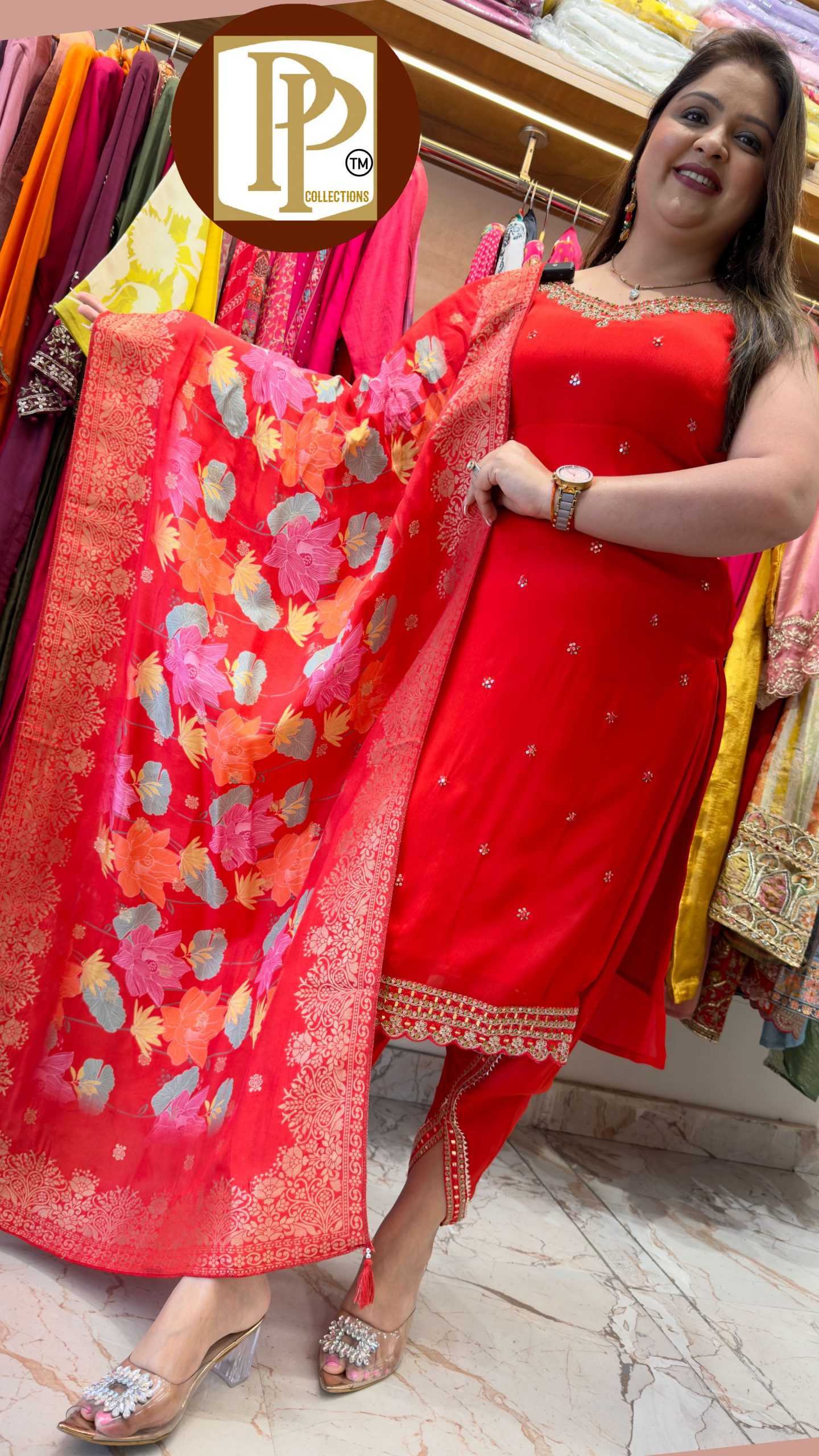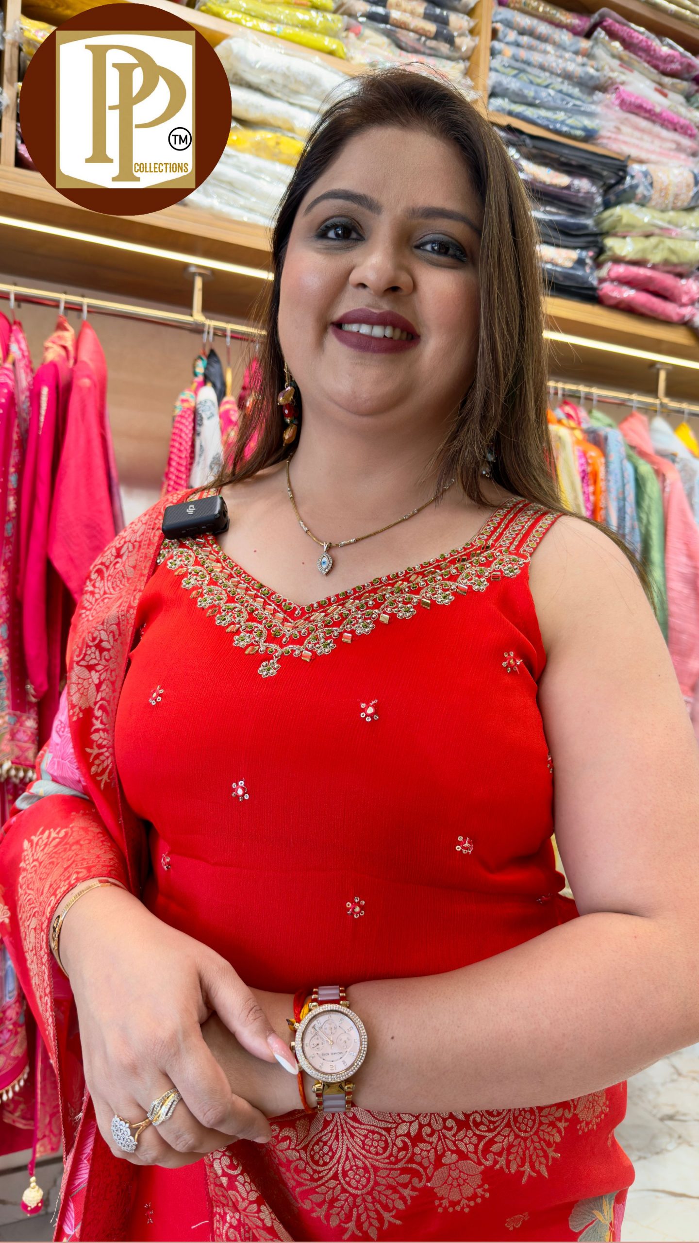Work Type : Hand & Original Mirror Work With Matching Banarasi Dupatta.