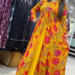 Attractive 3pc chinnon skirt set with alia style hand work on upper part with slit cut on front of the kurta with digital print on all over the kurta with inner lining & matching palazzo with plain shiffon dupatta.