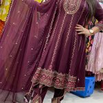 Attractive 3pc rayon short anarkali tulip pant set with hand & original mirror work on upper part & thread work on all over the kurta with matching hand work on borders of tulip pant with matching hand & thread work on all over the dupatta.