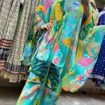 Out of StockAttractive 2pc chinnon kaaftan set with hand work on upper part with digital print pattern on all over the kurta with matching palazzo pant set with separate inner.