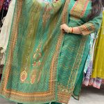 Out of StockAttractive 3pc muslin cotton printed pant set with print pattern on all over the kurta with matching plain pant with matching print pattern on all over the dupatta.