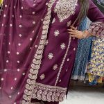 Attractive 3pc rayon palazzo set with hand & thread work on all over the kurta with matching hand & thread work also on pant borders with matching dupatta.