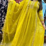 Attractive 3pc organza anarkali pant set with hand & thread work on upper part with print on all over the kurta with matching laces work on kurta & pant borders with matching dupatta.