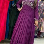 Out of StockAttractive 2pc chinnon gown with hand work on upper part & sleeves borders with attached cancan with matching shiffon dupatta.