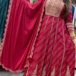 Attractive 3pc rayon anarkali pant set with original mirror work upper part with Thread work & print pattern on all over the kurta with matching thread work on pant borders with matching thread work on all over the dupatta.