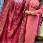 Attractive Silk 3Pcs Straight Suit Pant Set with hand and thread work on upper part and plain pant with contrasting block print pattern on all over the dupatta