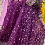 Out of StockAttractive 3pc anarkali pant set with hand, thread & real mirror work on upper part with floral print on sleeves and all over the kurta with laces work on borders of kurta & plain pant with laces & thread work on all over the dupatta.