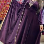 Description : 3piece Pant Set Fabric Type : Velvet Style : Anarkali Set Work Type : Hand Work With Matching Shawl.
