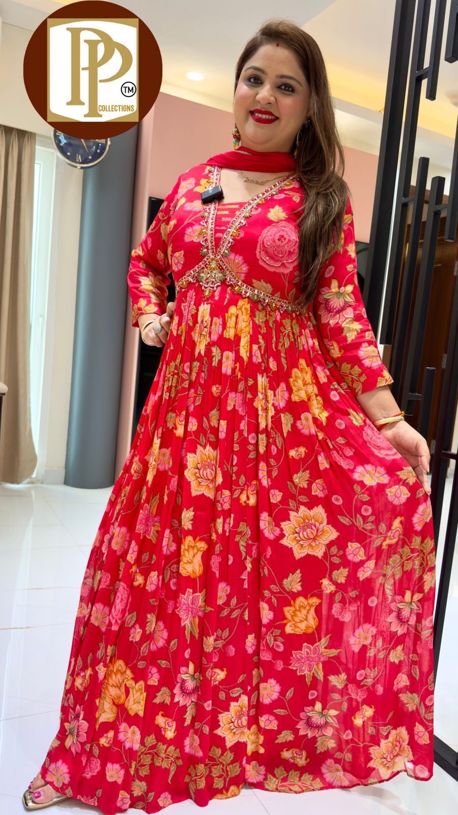 Work Type : All Over Print On Hand & Original Mirror Work With Matching Dupatta.
