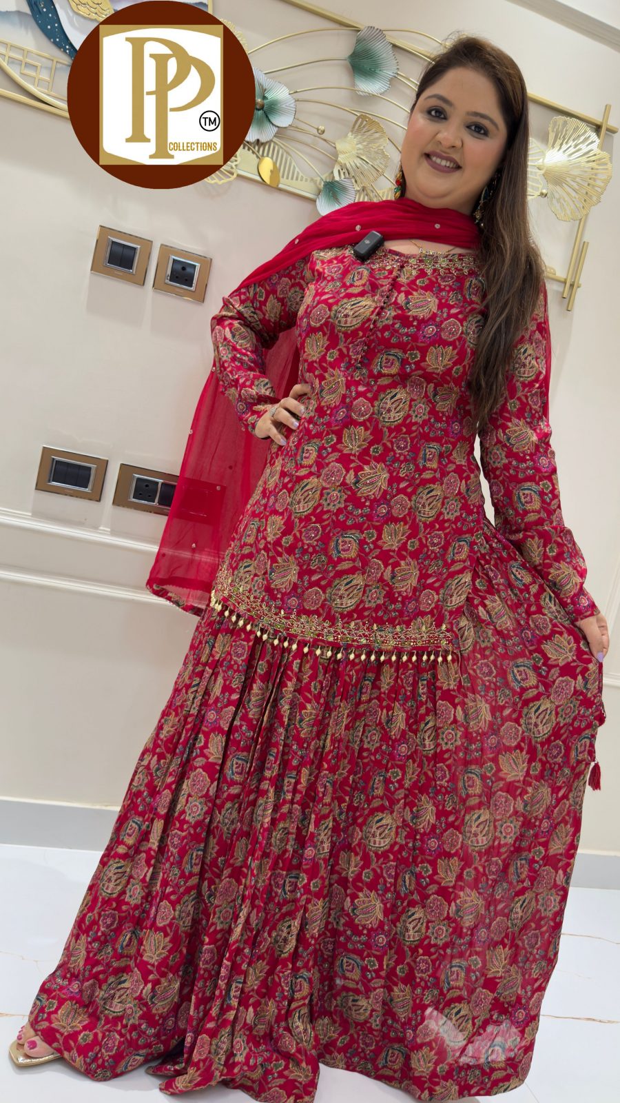 Work Type : Printed On Hand & Tasal Work With Matching Dupatta.