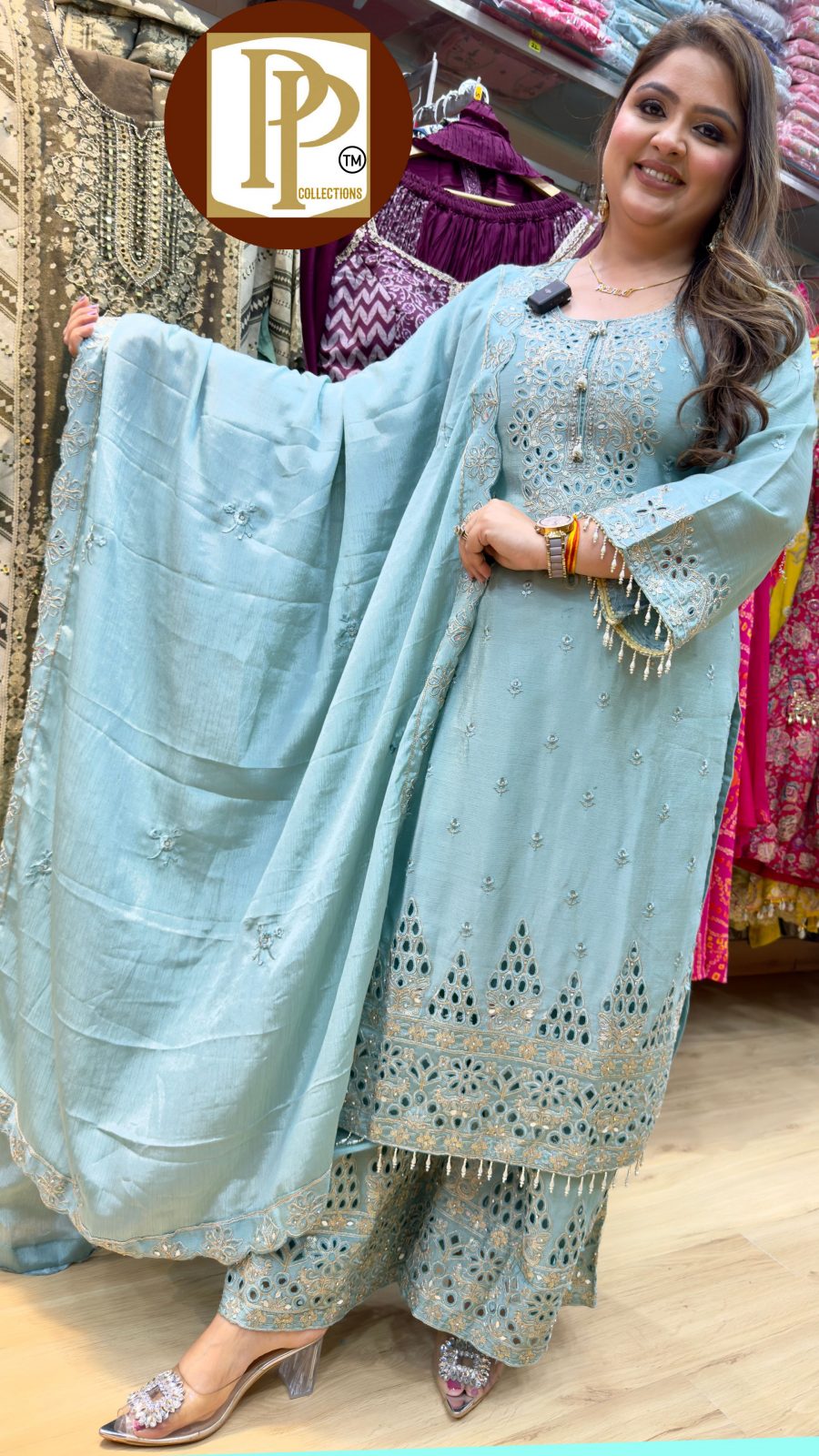 Work Type : Lazer Cut On Zari & Original Mirror Work With Matching Dupatta.