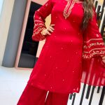 Work Type : hand work in neck and sleeves with matching palazzo.