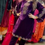 Description : 2 pcs Pant Set Fabric Type : Velvet Style : Co-ord Sets Work Type : Thread & Stone Work.