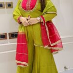 Work Type : heavy handwork cells work in short kurta & matching divider with organza dupatta.