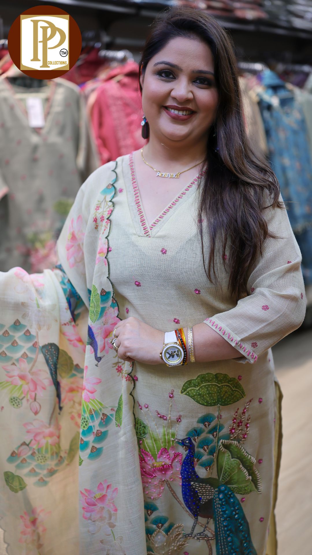 Work Type : handwork Kantha work in kurta with matching pants &Â dupatta .