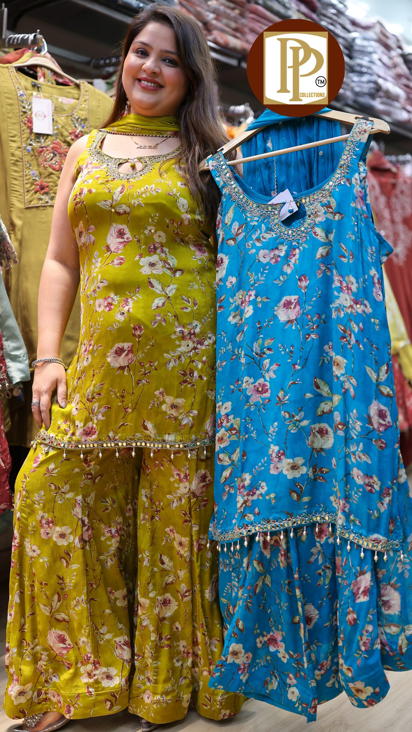 Work Type : full heavy handwork original mirror work all over print in kurta with matching printed divider & dupatta .