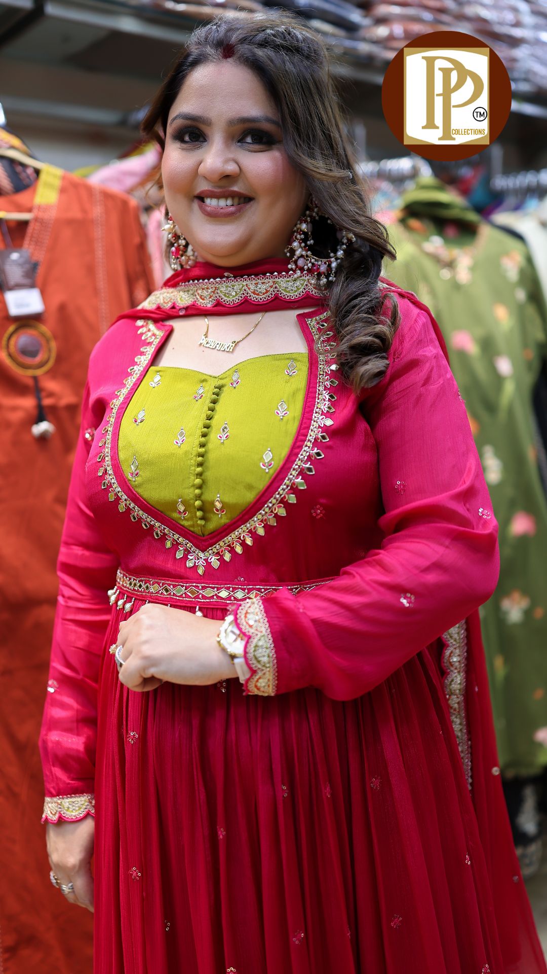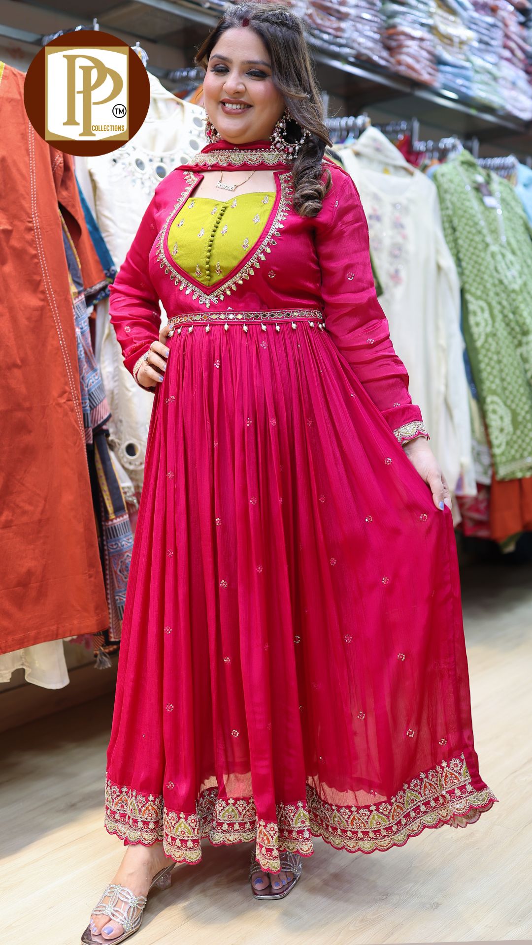 Work Type : heavy handwork Zari work original mirror work in anarkali with matching pant & dupatta .