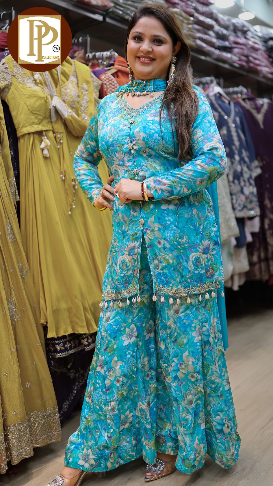 Work Type : full handwork in kurta with matching sharara & choker neck dupatta .