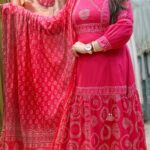 Work Type : Jaipuri print sipi work threadwork In anarkali & ballon style sleeveS with matching pant & printed dupatta .