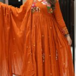 Work Type : full heavy threadwork in Anarkali with matching pants & dupatta .