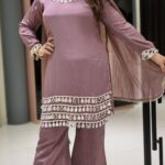 Work Type : Full original mirror work in kurta with fish cut style divider & dupatta .
